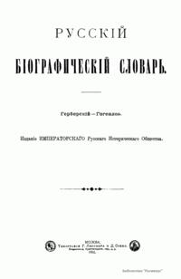 Русский биографический словарь (25 томов), в состав которого вошли имена и биографии виднейших деятелей государства, науки, просвещения и церковных деятелей, издавался Русским историческим обществом с 1896 по 1918 год. Русское историческое общество было основано в Санкт-Петербурге в 1866 году по инициативе известных отечественных историков, военных и государственных деятелей и ставило своей целью всесторонне содействовать развитию русского национального исторического просвещения. Общество пользовалось покровительством и финансовой поддержкой императорской семьи. Его деятельность носила археографический характер. Члены общества собирали исторические документы, которые публиковались в «Сборниках русского исторического общества». Всего до 1920 года (в этом году общество было закрыто) вышло 148 томов. Таким образом в научный оборот было введено большое количество документов XVIII – начала XIX века, ранее недоступных для исследователей, так как документальные материалы архивов царской России были для историков закрыты. К изданию русского биографического словаря, материалы которого до сих пор являются интереснейшим источником для исследователей, Общество приступило по инициативе императора Александра III. Тома биографического словаря выходили не в алфавитном порядке. С 1896 по 1909 год редактором словаря был руководитель Русского исторического общества, промышленник, член Сената Александр Александрович Половцев. Он выпустил 1, 2, 3, 6, 8, 12, 13, 14, 15, 18, 19, 21 и 22-й тома, поэтому этот словарь известен еще как «словарь Половцева».