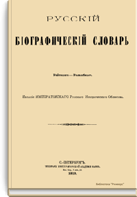 Русский биографический словарь (25 томов), в состав которого вошли имена и биографии виднейших деятелей государства, науки, просвещения и церковных деятелей, издавался Русским историческим обществом с 1896 по 1918 год. Русское историческое общество было основано в Санкт-Петербурге в 1866 году по инициативе известных отечественных историков, военных и государственных деятелей и ставило своей целью всесторонне содействовать развитию русского национального исторического просвещения. Общество пользовалось покровительством и финансовой поддержкой императорской семьи. Его деятельность носила археографический характер. Члены общества собирали исторические документы, которые публиковались в «Сборниках русского исторического общества». Всего до 1920 года (в этом году общество было закрыто) вышло 148 томов. Таким образом в научный оборот было введено большое количество документов XVIII – начала XIX века, ранее недоступных для исследователей, так как документальные материалы архивов царской России были для историков закрыты. К изданию русского биографического словаря, материалы которого до сих пор являются интереснейшим источником для исследователей, Общество приступило по инициативе императора Александра III. Тома биографического словаря выходили не в алфавитном порядке. С 1896 по 1909 год редактором словаря был руководитель Русского исторического общества, промышленник, член Сената Александр Александрович Половцев. Он выпустил 1, 2, 3, 6, 8, 12, 13, 14, 15, 18, 19, 21 и 22-й тома, поэтому этот словарь известен еще как «словарь Половцева».