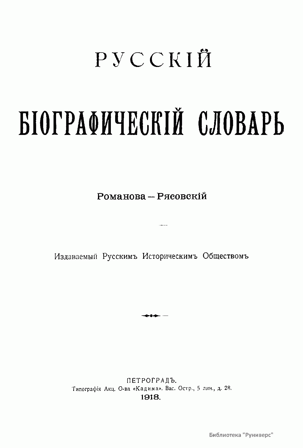 Русскiй бiографическiй словарь. Томъ XVII. Романова - Рясовскiй