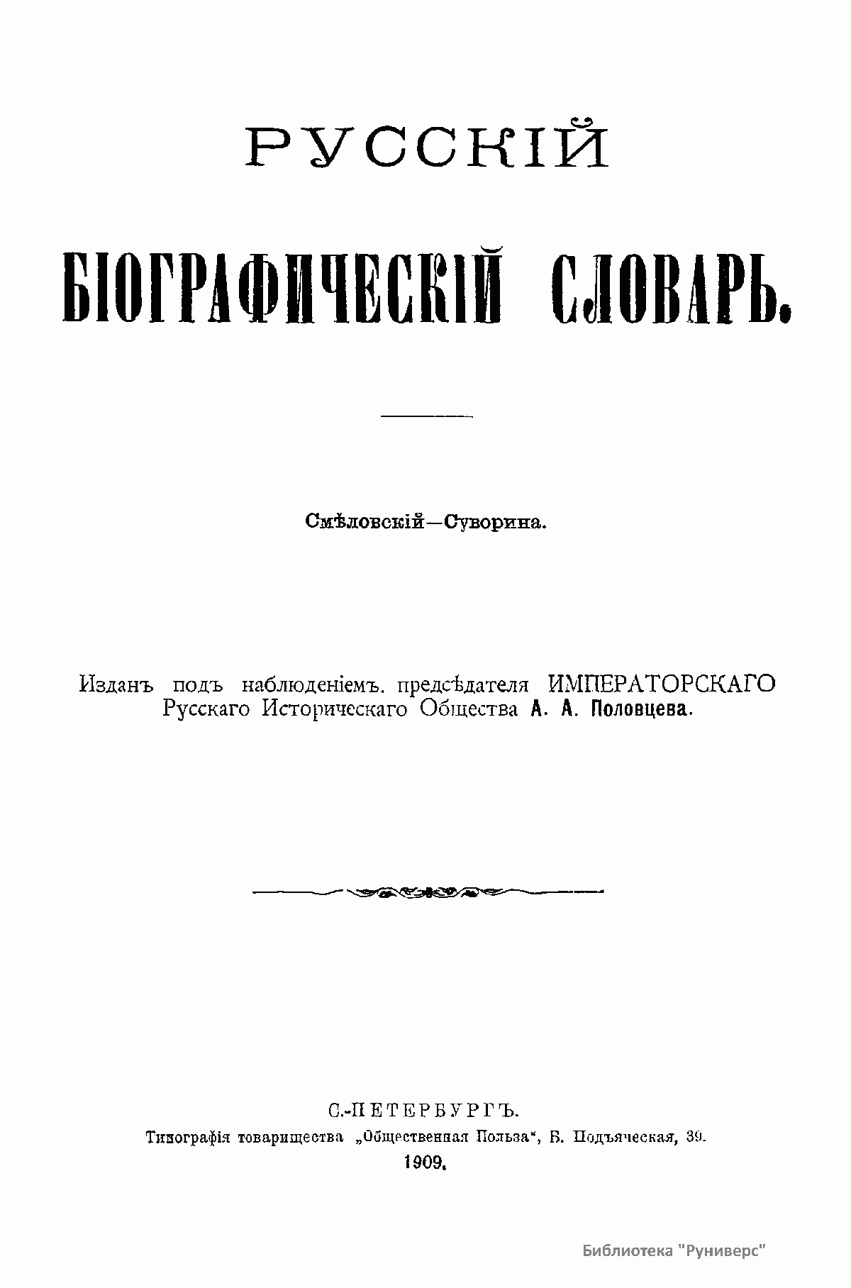 Русскiй бiографическiй словарь. Томъ XIX. Смѣловскiй - Суворина
