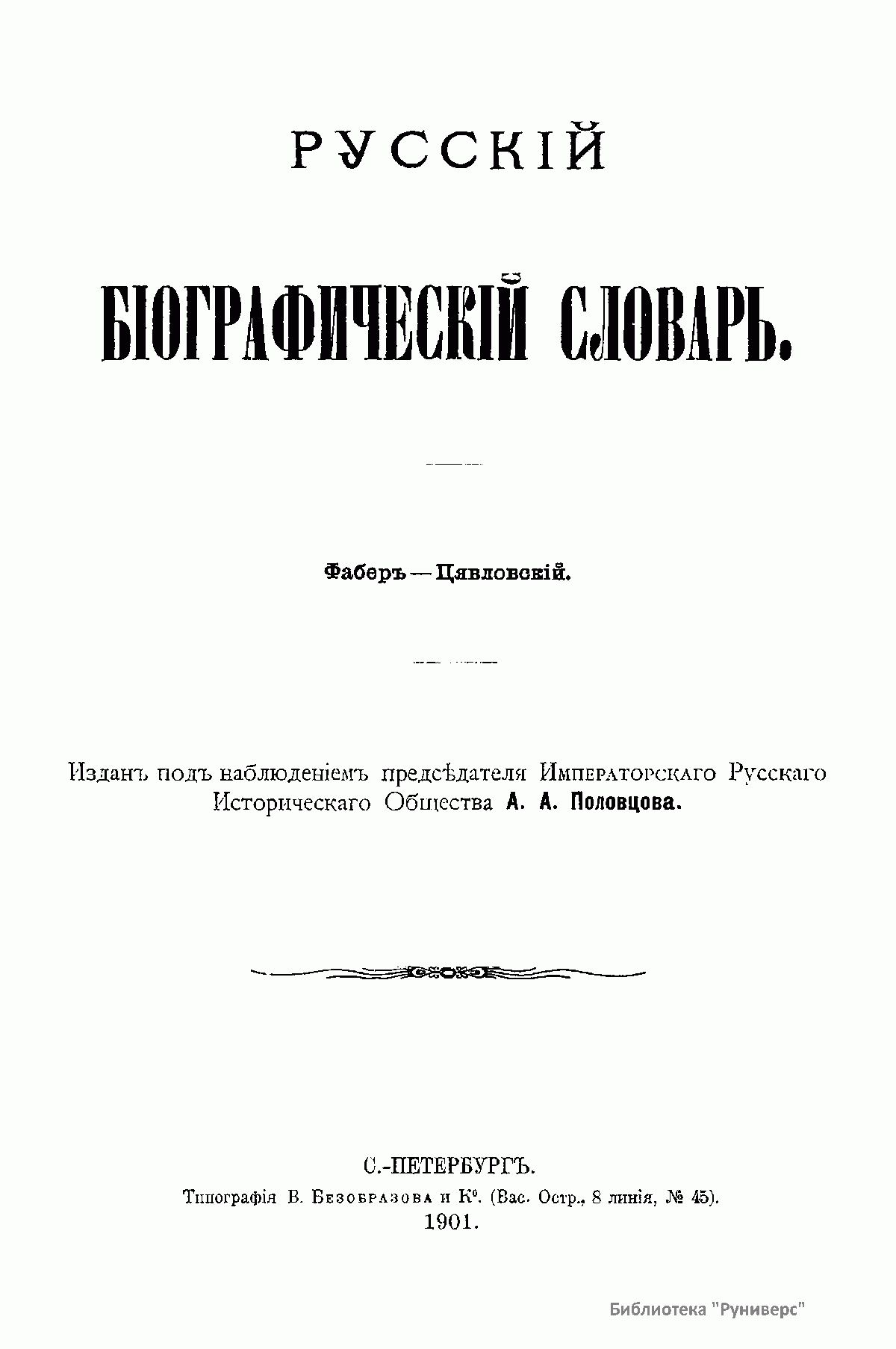 Русскiй бiографическiй словарь. Томъ XXI. Фаберъ - Цявловскiй