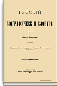 Русский биографический словарь (25 томов), в состав которого вошли имена и биографии виднейших деятелей государства, науки, просвещения и церковных деятелей, издавался Русским историческим обществом с 1896 по 1918 год. Русское историческое общество было основано в Санкт-Петербурге в 1866 году по инициативе известных отечественных историков, военных и государственных деятелей и ставило своей целью всесторонне содействовать развитию русского национального исторического просвещения. Общество пользовалось покровительством и финансовой поддержкой императорской семьи. Его деятельность носила археографический характер. Члены общества собирали исторические документы, которые публиковались в «Сборниках русского исторического общества». Всего до 1920 года (в этом году общество было закрыто) вышло 148 томов. Таким образом в научный оборот было введено большое количество документов XVIII – начала XIX века, ранее недоступных для исследователей, так как документальные материалы архивов царской России были для историков закрыты. К изданию русского биографического словаря, материалы которого до сих пор являются интереснейшим источником для исследователей, Общество приступило по инициативе императора Александра III. Тома биографического словаря выходили не в алфавитном порядке. С 1896 по 1909 год редактором словаря был руководитель Русского исторического общества, промышленник, член Сената Александр Александрович Половцев. Он выпустил 1, 2, 3, 6, 8, 12, 13, 14, 15, 18, 19, 21 и 22-й тома, поэтому этот словарь известен еще как «словарь Половцева».