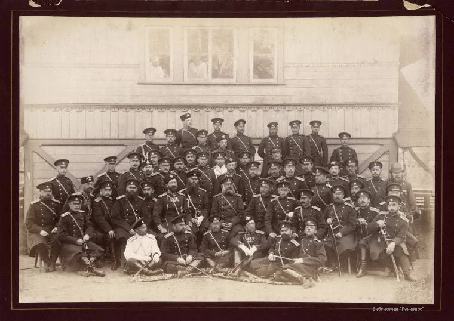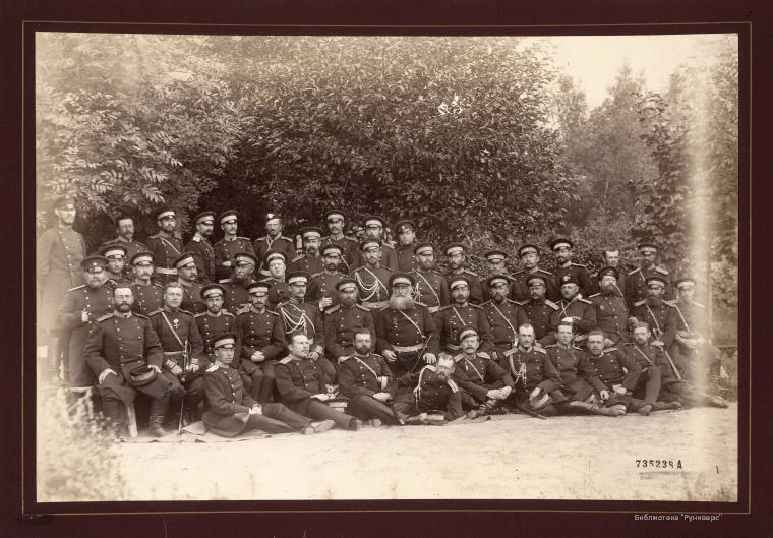 Изданный в 1889 г. известным фотографом Дмитриевым (Н.Д. Диго) «Альбом офицерских полковых групп. Гвардейский корпус» содержит 28 фотографий офицеров гвардейских полков Русской императорской армии.