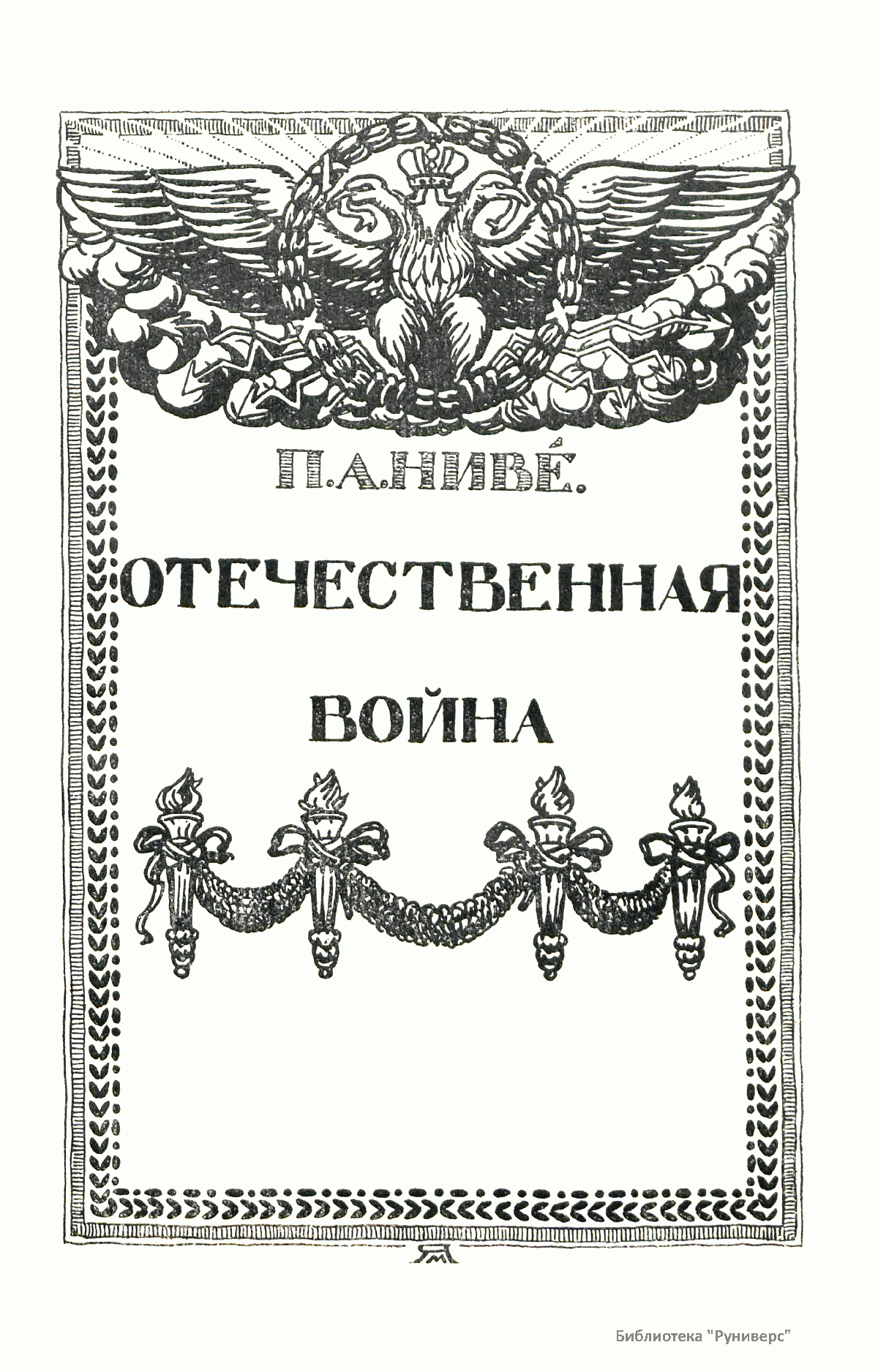 Книга военного историка, полковника Петра Андреевича Ниве «Отечественная война» является юбилейным изданием 1912 г., которое имело целью восстановить точную, во всех ее деталях историческую канву событий Отечественной войны 1812 г. Данное издание богато иллюстрировано, в нем представлены планы и карты всех крупных сражений «Русской кампании Наполеона».