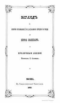 Взглядъ на исторiю установленiя государственнаго порядка въ Россiи до Петра Великаго