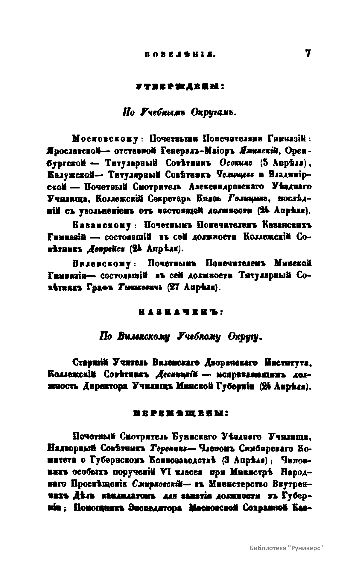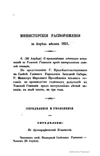 1. «Записки Департамента народного просвещения». Вышло в свет три книги этого издания – в 1825, 1827 и 1829-м годах.