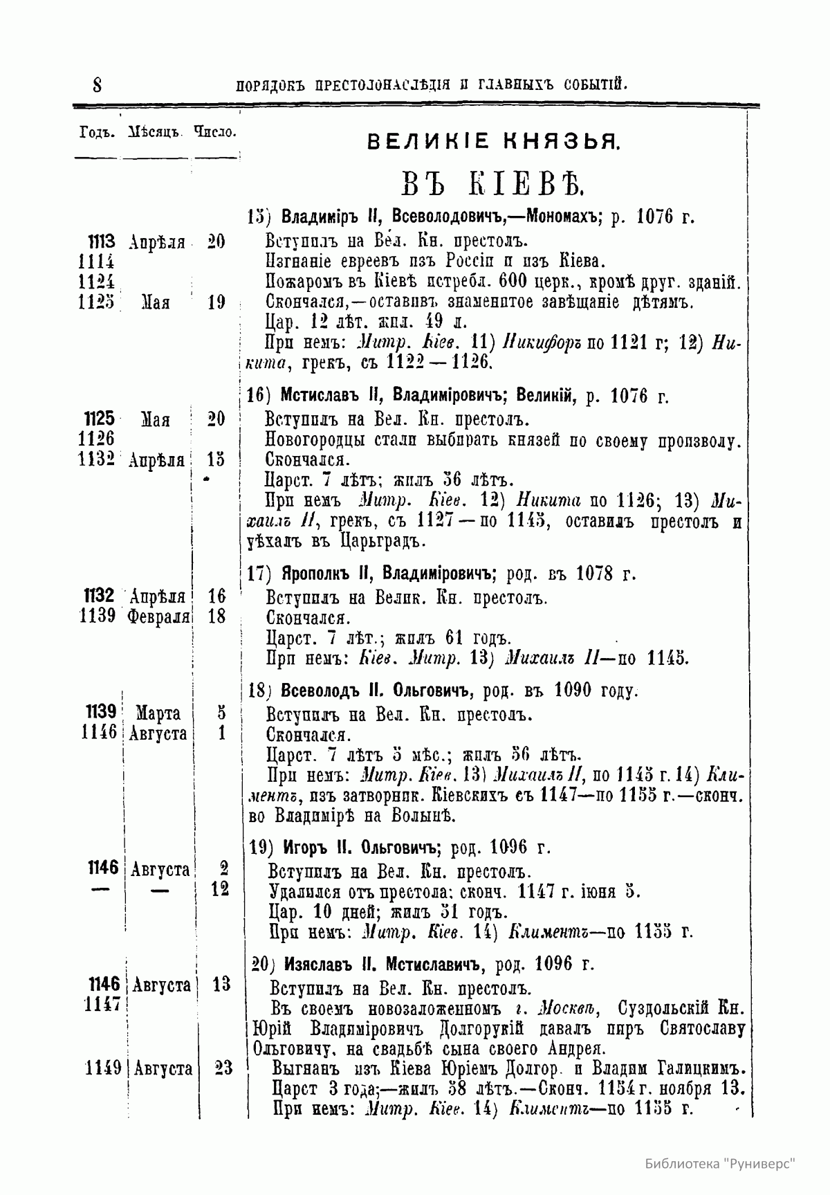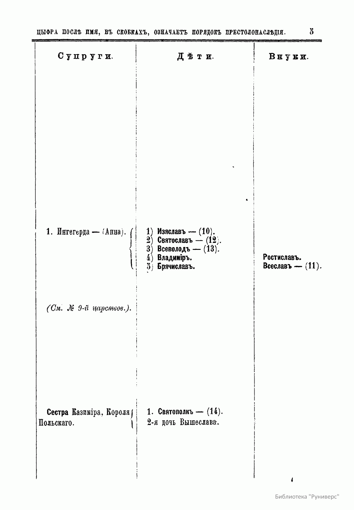 В книге опубликованы две таблицы. В них указан порядок престолонаследия Дома Рюриковичей и Дома Романовых до Александра II, а также сообщаются все основные события, происходившие при великих князьях и царях.