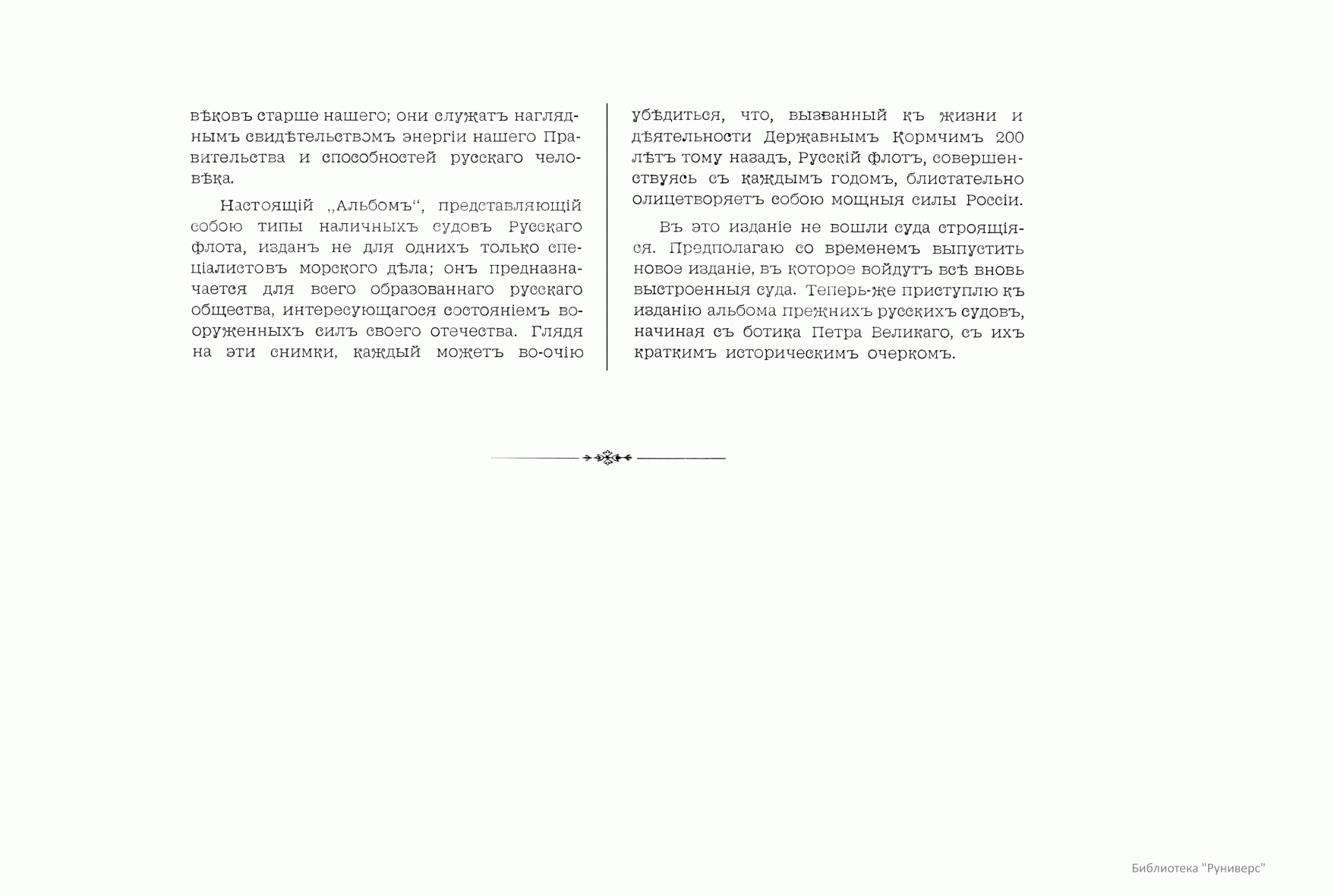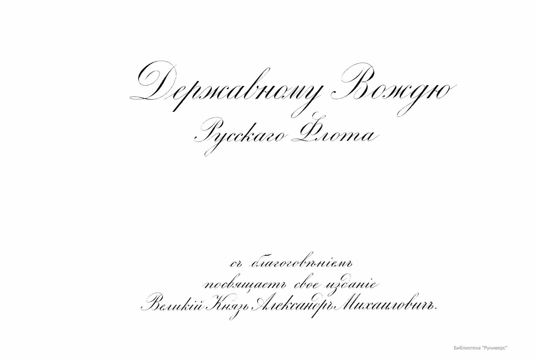В царствование Александра III русский флот усилился 103 новыми судами. Это 14 броненосных кораблей, два броненосных крейсера, три полуброненосных фрегата, три корвета, два крейсера, три броненосные канонерские лодки, 14 канонерских лодок, шесть минных крейсеров, два минных транспорта, восемь пароходов, две шхуны, 44 миноносца. Настоящий альбом, изданный в 1893 году, представляет типы наличных судов русского флота. Он предназначался «не только для специалистов морского дела, но и для всего образованного русского общества, интересующегося состоянием вооруженных сил своего отечества». Читатель увидит 54 цветных рисунка действовавших в то время судов с технической характеристикой каждого.