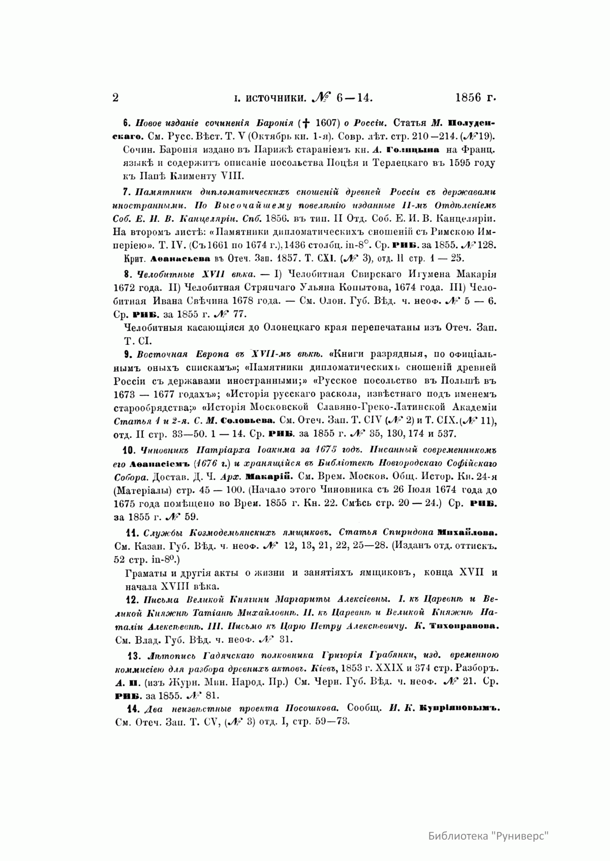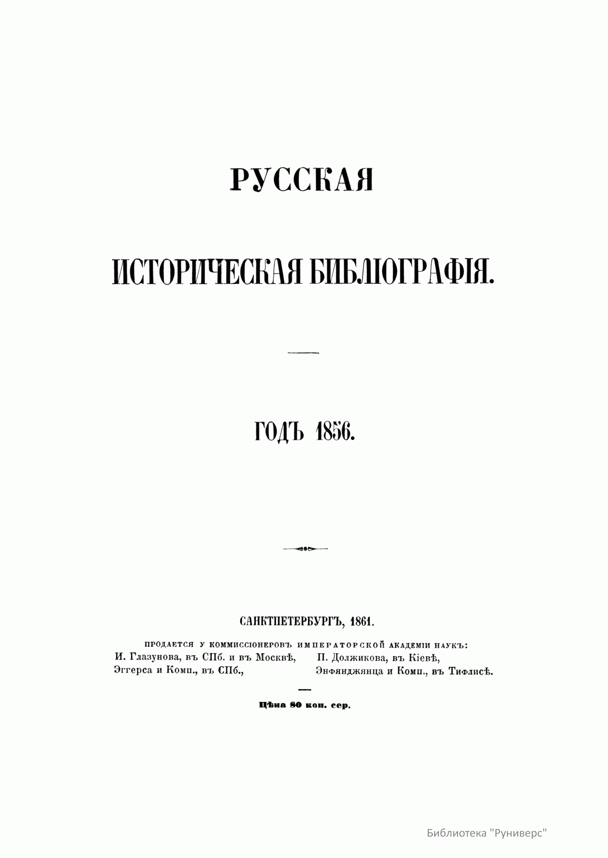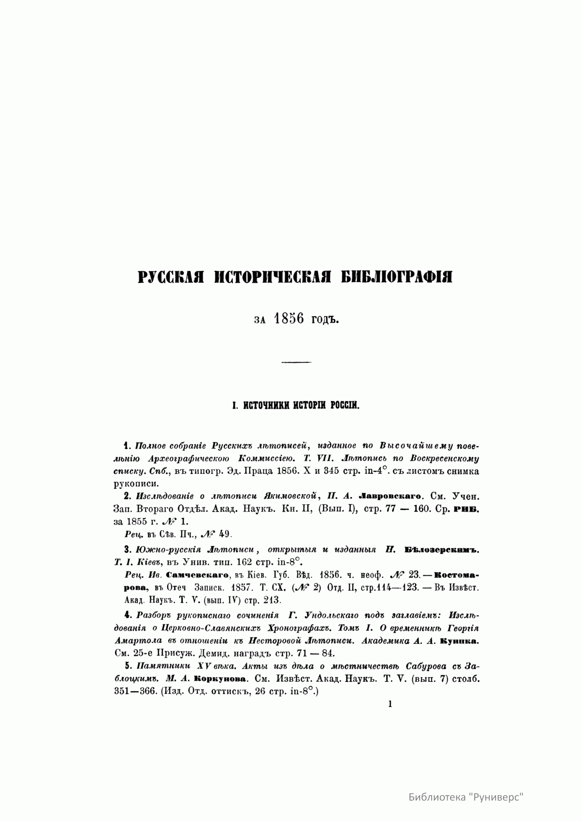 Русская историческая библиографiя. Годъ 1856