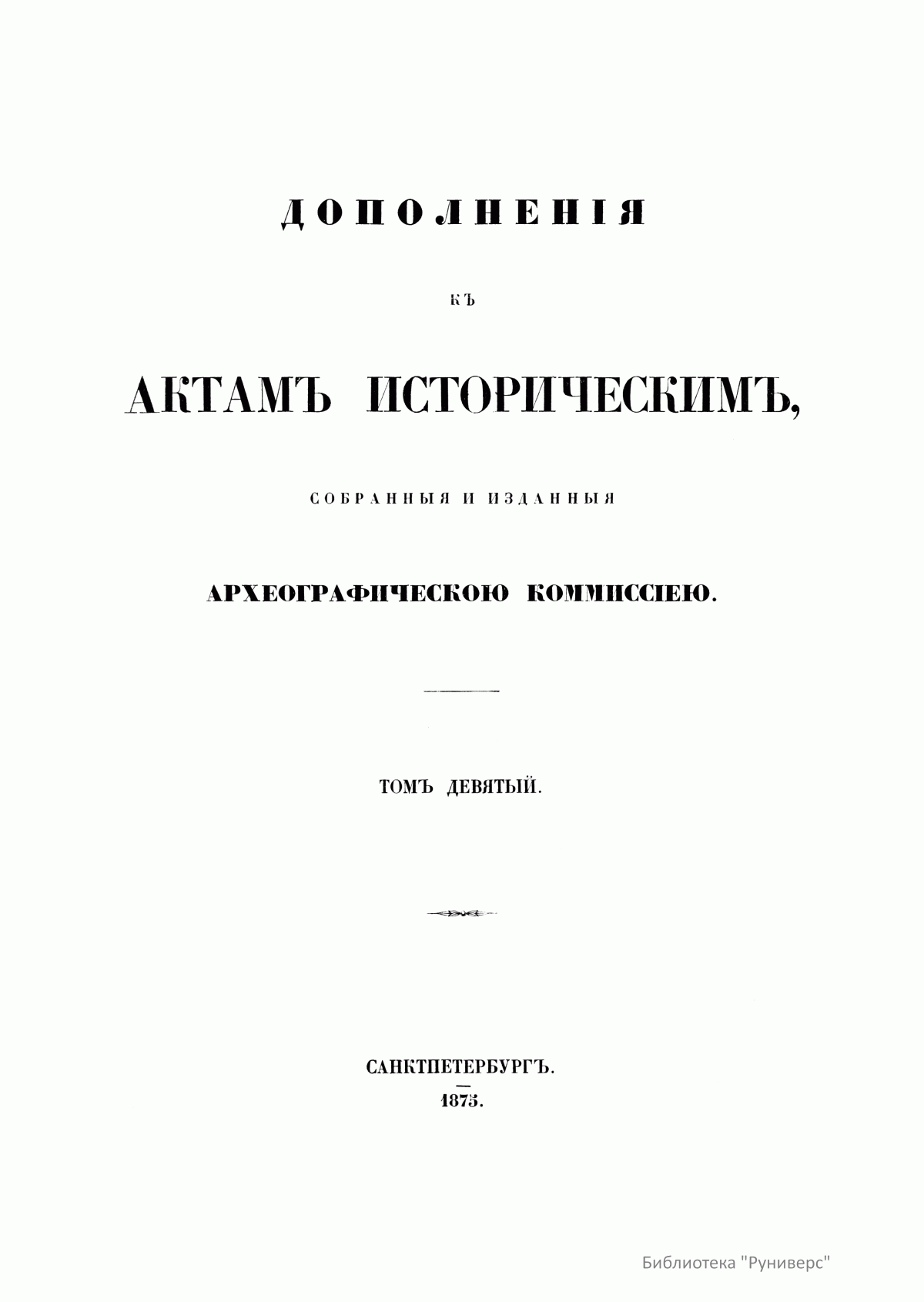 Дополненiя къ актамъ историческимъ, собранныя и изданныя археографическою коммиссiею. Томъ девятый