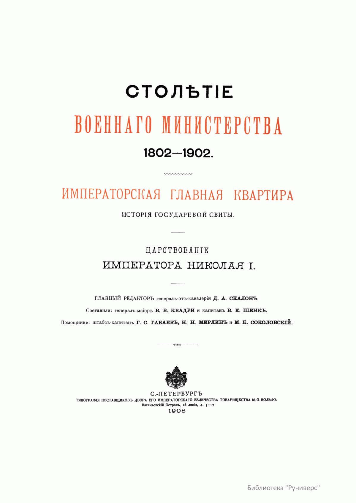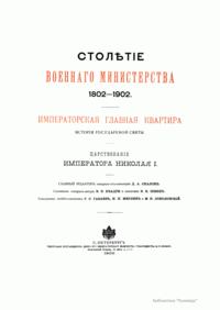 Столѣтiе военнаго министерства. 1802-1902. Императорская главная квартира. Исторiя государевой свиты. Царствованiе Императора Николая I. Книга 1