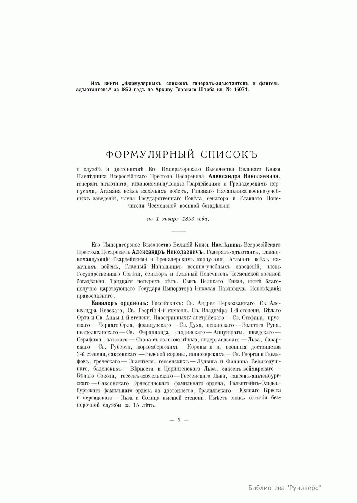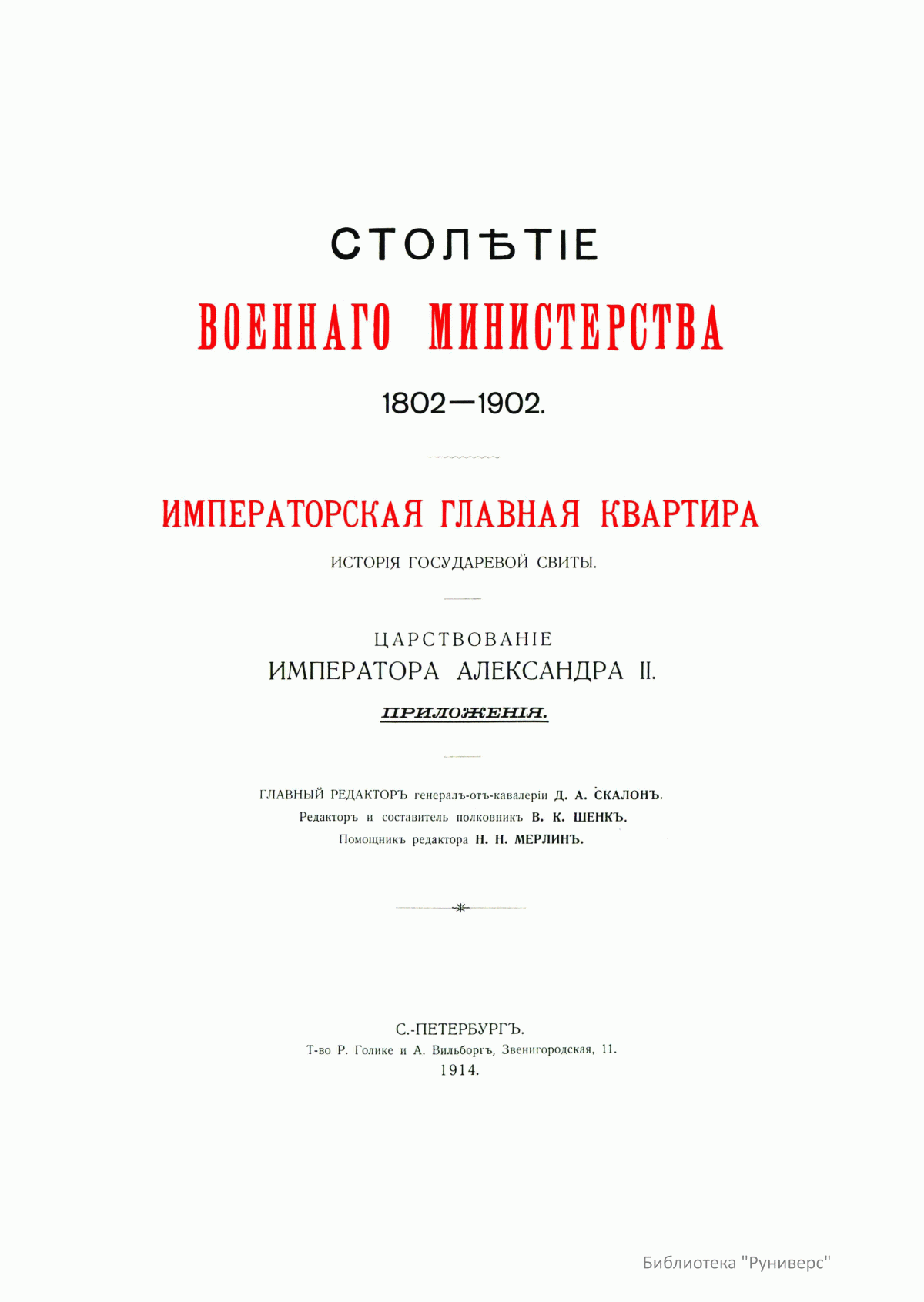 Столѣтiе военнаго министерства. 1802-1902. Императорская главная квартира. Исторiя государевой свиты. Царствованiе Императора Александра II. Приложенiя