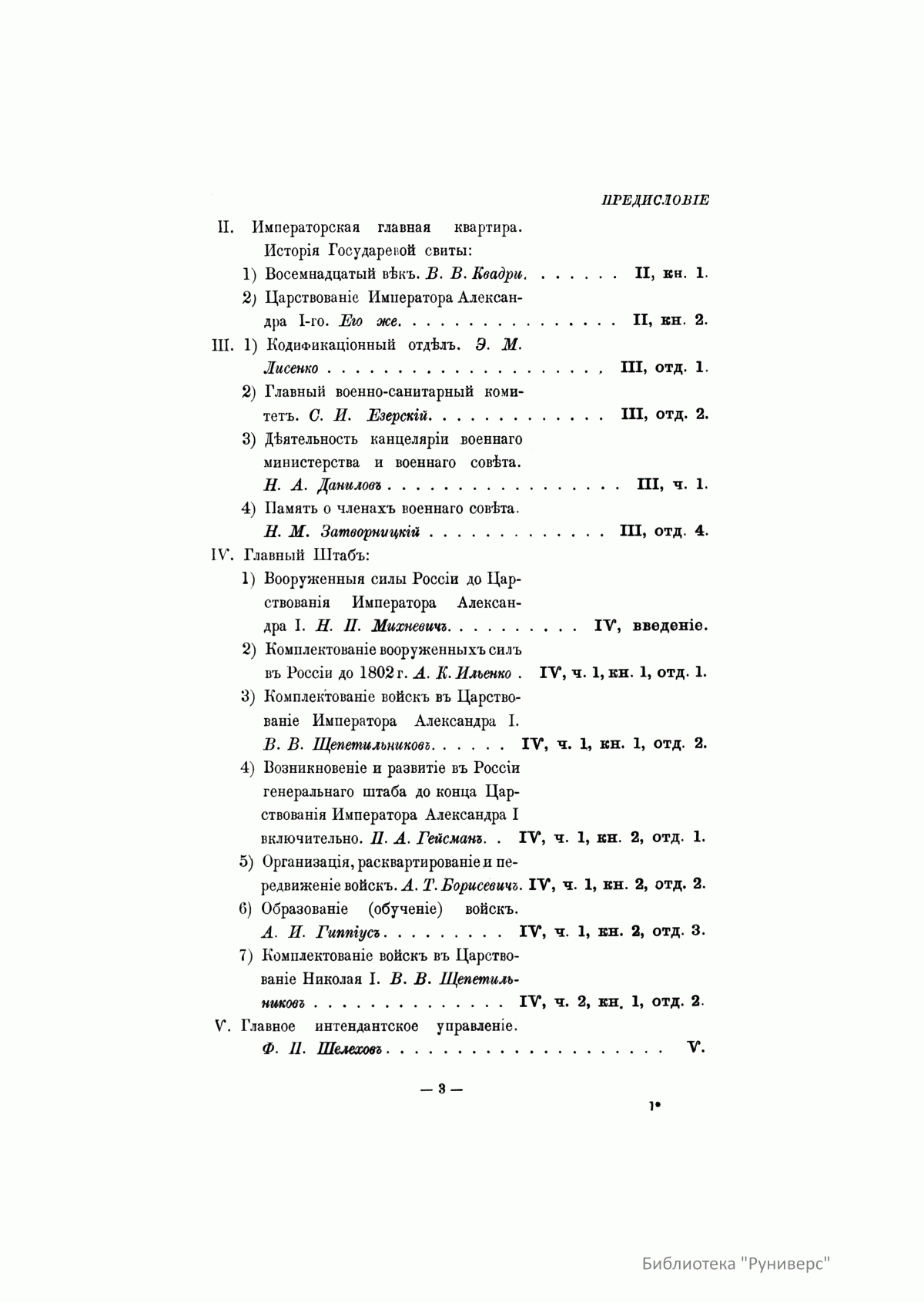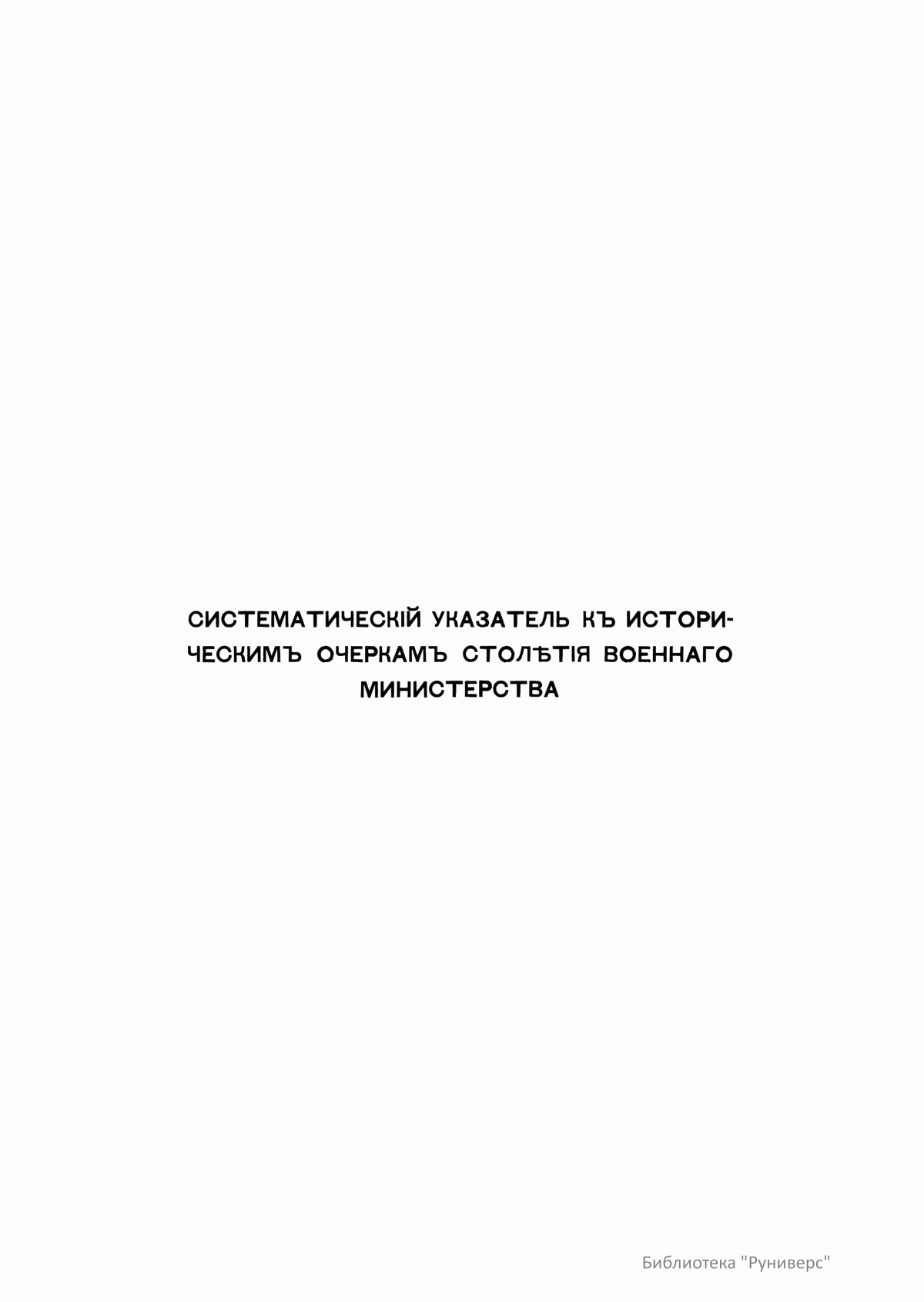 Систематическiй указатель къ историческимъ очеркамъ столѣтiя военнаго министерства