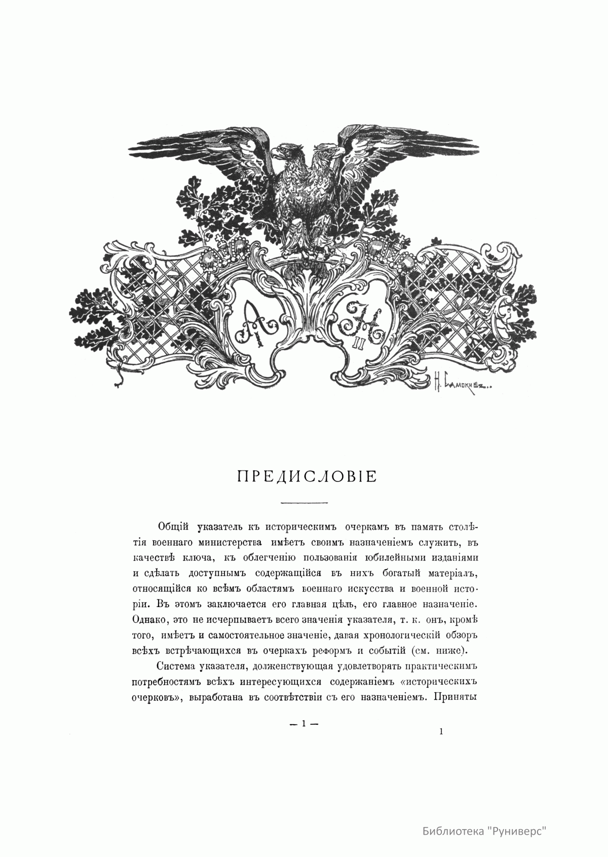 В исторических очерках в память столетия военного министерства содержится богатый материал, относящийся ко всем областям военного искусства и военной истории. Цель настоящего «Систематического указателя к историческим очеркам» облегчить читателю пользование этим юбилейным изданием. Указатель имеет и самостоятельное значение, так как дает хронологический обзор всех встречающихся в очерках реформ и событий. Указатель адресован прежде всего занимающимся военной историей, поэтому хронологический перечень – указатель «событий, учреждений и реформ» – стоит на первом плане. За ним следует указатель личных имен (второй отдел) с отметками важнейших сведений, которые имеются в очерках, как-то: чин, должность, важнейшие действия, совершенные данным лицом и пр. В третий отдел, предметный, входят все войсковые части, учреждения, важнейшие в стратегическом и военно-административном отношении географические пункты и другие предметы. Четвертый содержит указания иллюстраций и документов. Пятый представляет собой краткий конспект очерков. Вся система представлена в таблице, опубликованной во вступлении (выпуск первый, книга первая).