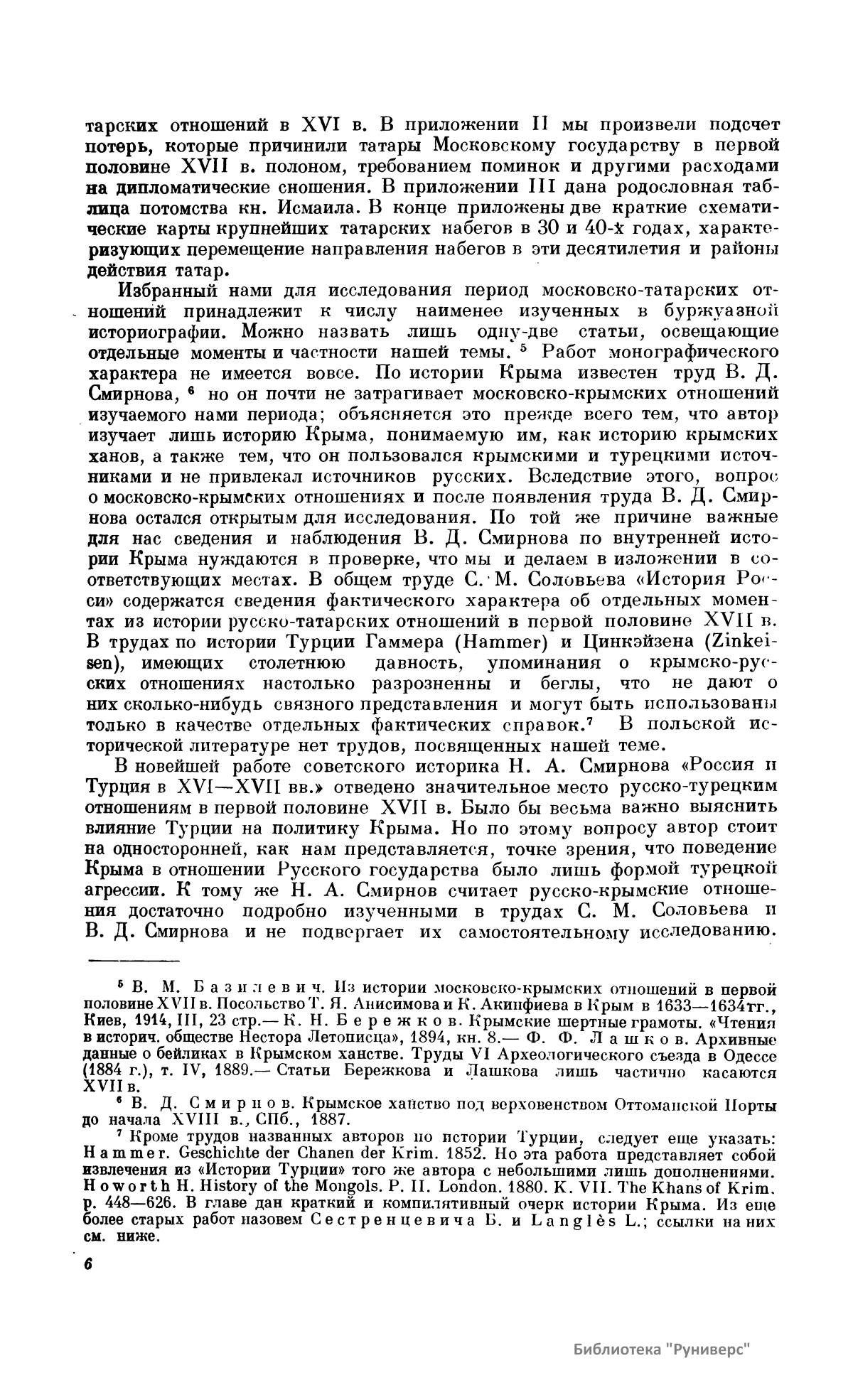 В XVII веке Московскому государству приходилось иметь дело с последними из уцелевших татарских царств – Крымом и ногайскими ордами. Борьба с ними была важным фактором в жизни Московского государства. Автор исследования ставит перед собой задачу выяснить силы, вызывавшие постоянную военную активность татар, условия, ее поддерживавшие и придававшие борьбе Московского государства тяжелый и затяжной характер; установить связь этой борьбы с внешней политикой московского правительства и ее влияние на внутреннюю правительственную деятельность; проследить ход борьбы, изменение ее форм и ее результаты. Работа состоит из восьми глав в хронологической последовательности. Первая глава содержит общий очерк московско-татарских отношений со времен Ливонской войны до конца XVI века. Остальные главы посвящены основной теме исследования. Подробное оглавление находится в конце книги.