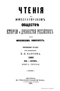 Чтенiя въ Императорскомъ Обществѣ Исторiи и Древностей Россiйскихъ при Московскомъ Университетѣ. 1883. Iюль-Сентябрь. Книга третья