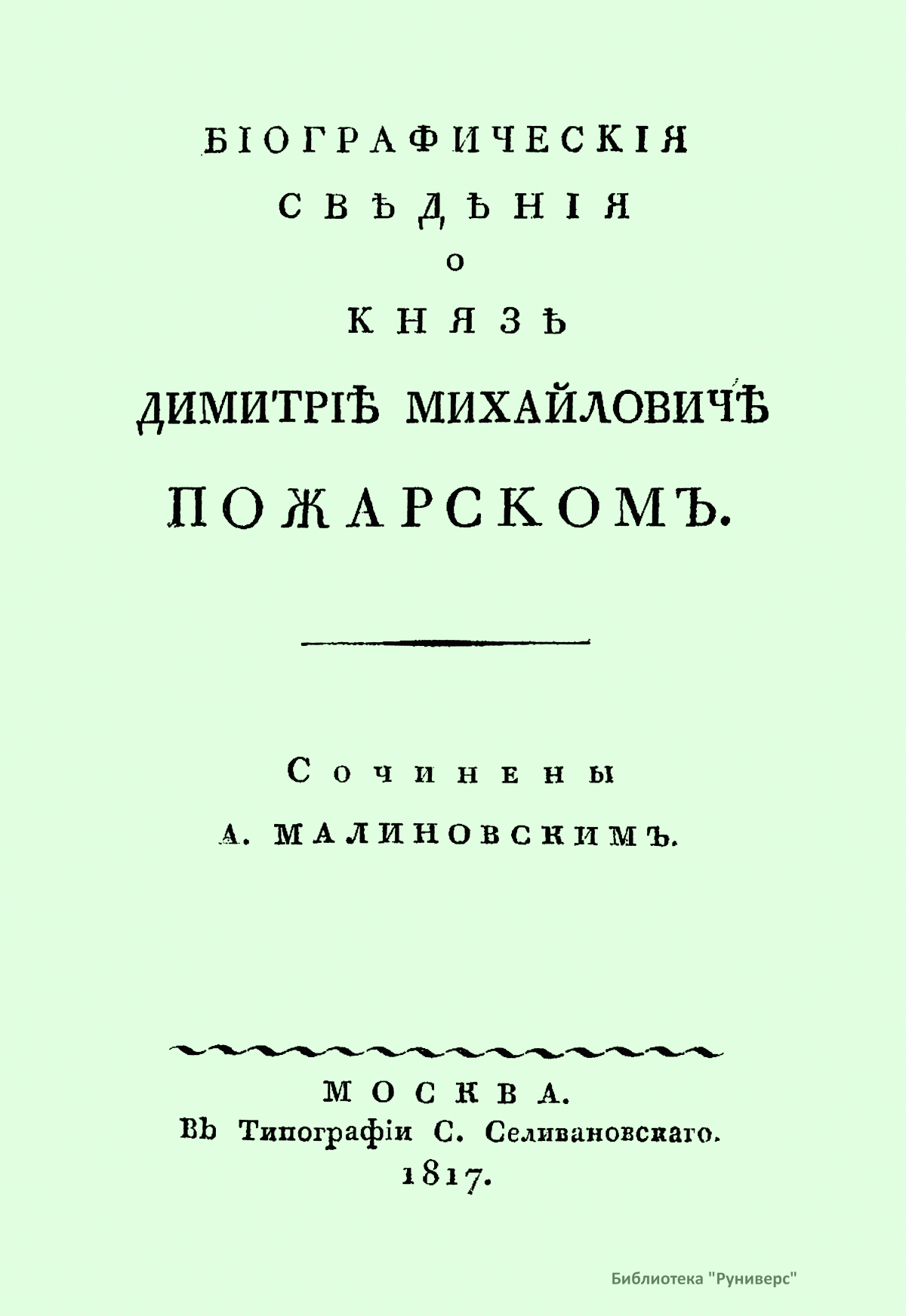 Бiографическiя свѣдѣнія о князѣ Дмитріѣ Михайловичѣ Пожарскомъ