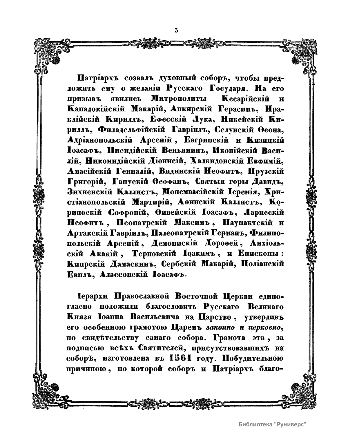 Соборная грамота духовенства православной восточной церкви, утверждающая санъ царя за Великимъ Княземъ Iоанномъ IV Васильевичемъ, 1561 года