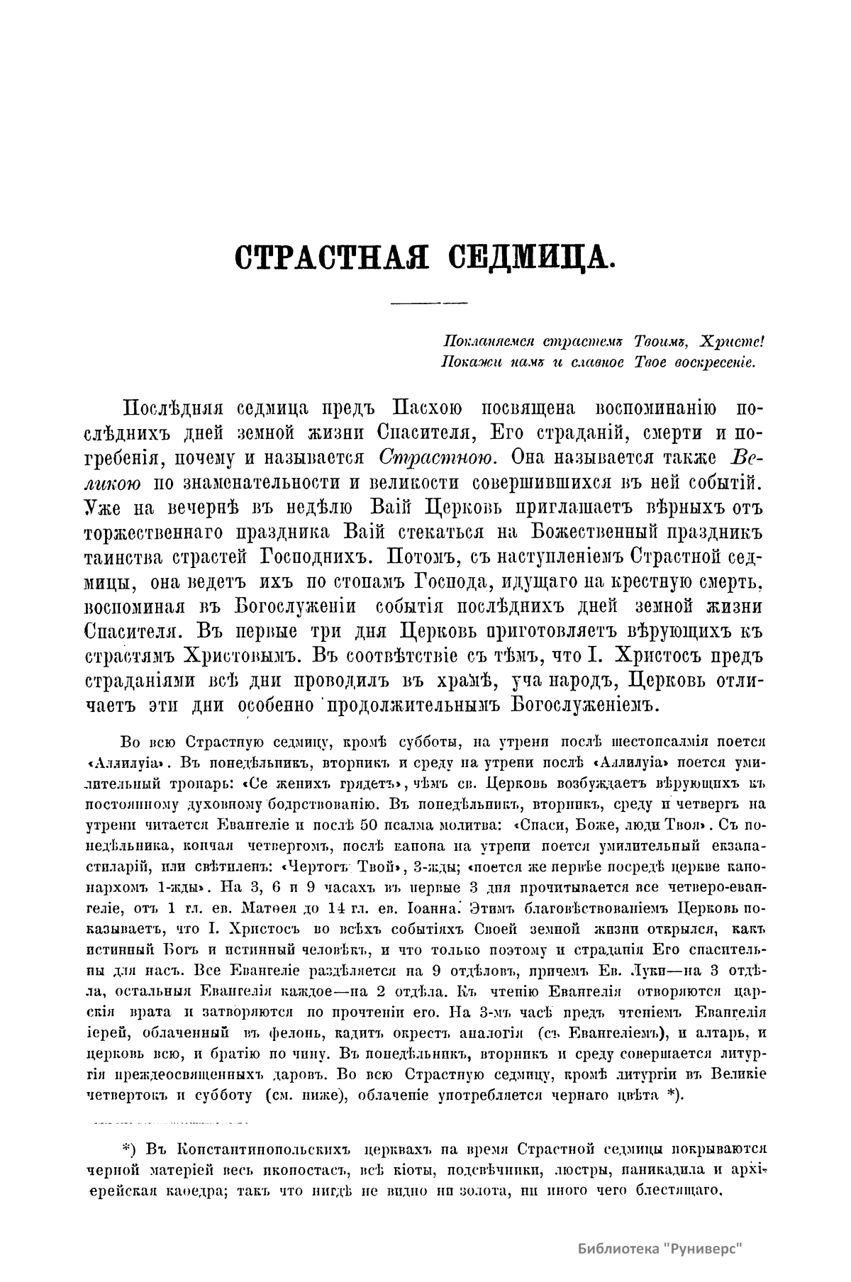 Страстная седмица (Великiй понедѣльникъ, Великiй вторникъ, Великая среда, Великiй четвертокъ, Великiй пятокъ, Великая суббота). Пасха
