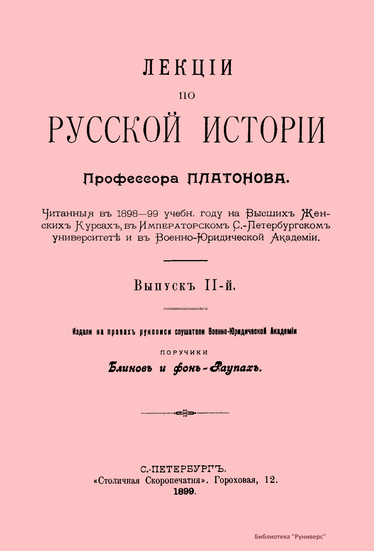 Только с этими оговорками и решаюсь я выпустить в свет настоящее издание «Лекций». С. Платонов