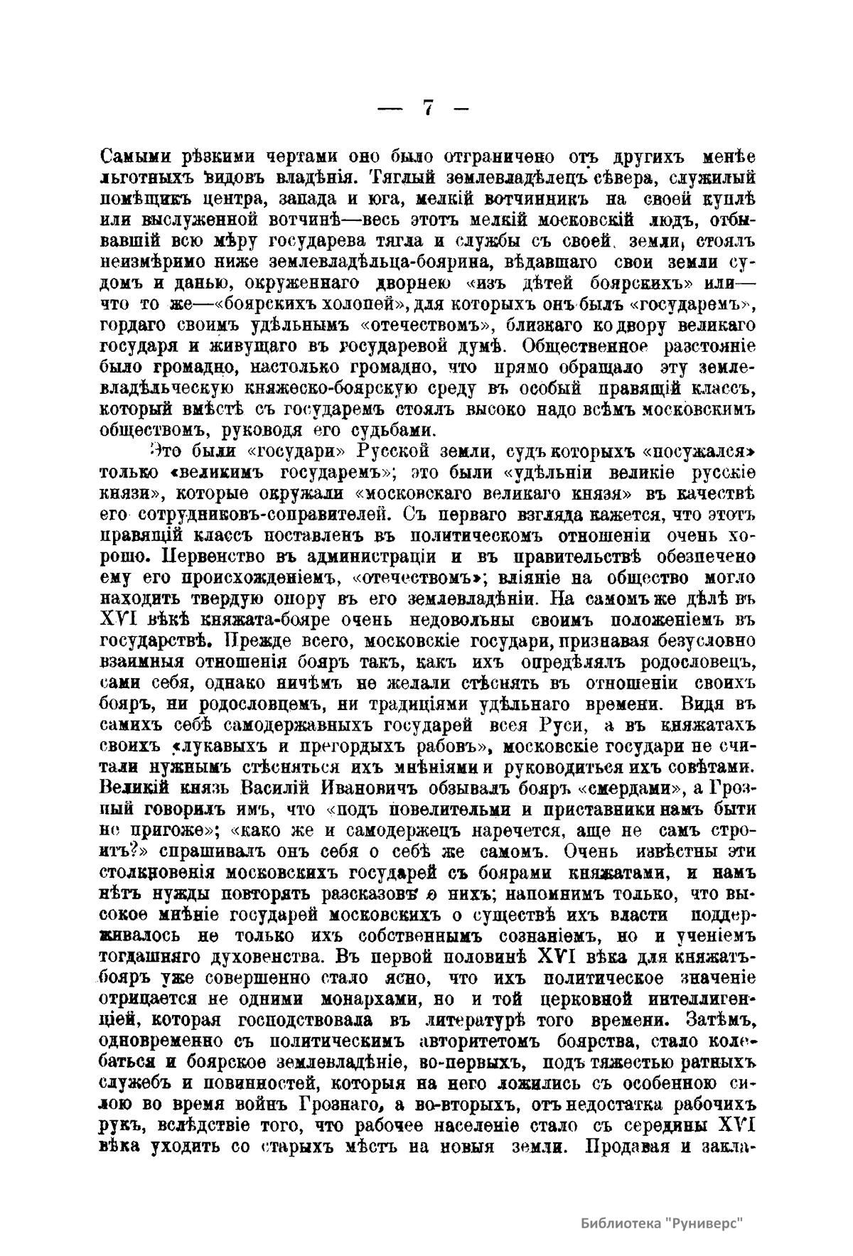 В частности, в восьмом издании пересмотр коснулся главным образом тех частей книги, которые посвящены истории Московского княжества в XIV-XV вв. и истории царствований Николая I и Александра II. Для усиления фактической стороны изложения в этих частях курса мною были привлечены некоторые выдержки из моего «Учебника русской истории» с соответствующими изменениями текста, так же как в прежних изданиях были оттуда же сделаны вставки в отдел истории Киевской Руси до XII века. Кроме того, в восьмом издании заново была изложена характеристика царя Алексея Михайловича. В девятом издании сделаны необходимые, в общем небольшие, исправления. Для десятого издания текст был пересмотрен.