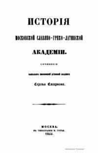 Исторiя московской славяно-греко-латинской академiи