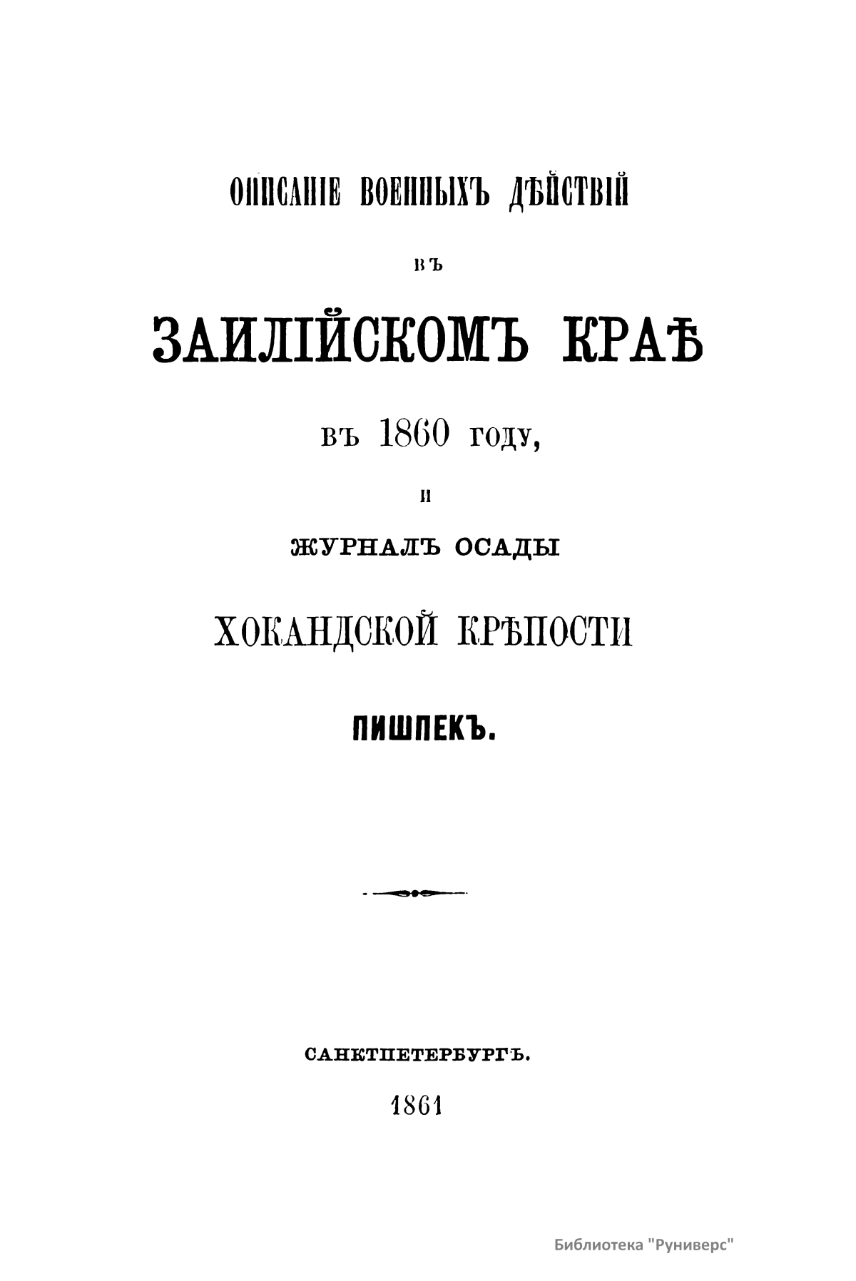 Описание военных действий в Заилийском крае в 1860 году, и журнал осады хокандской крепости Пишпек