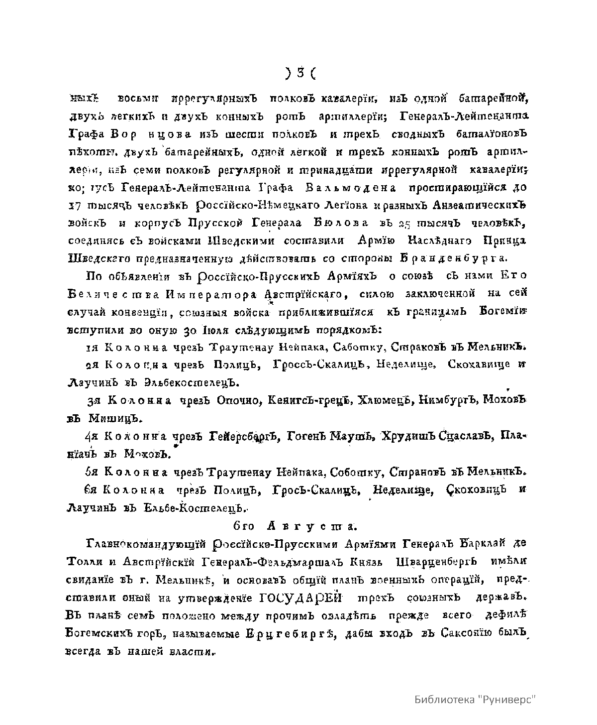Журналъ Военныхъ движенiй и дѣйствiй Россiйско-императорскихъ и королевско Прусскихъ армiй со времени прекращенiя послѣдняго между ими и Армiями Французскими перемирiя т.е. с 5/17 Августа 1813 года