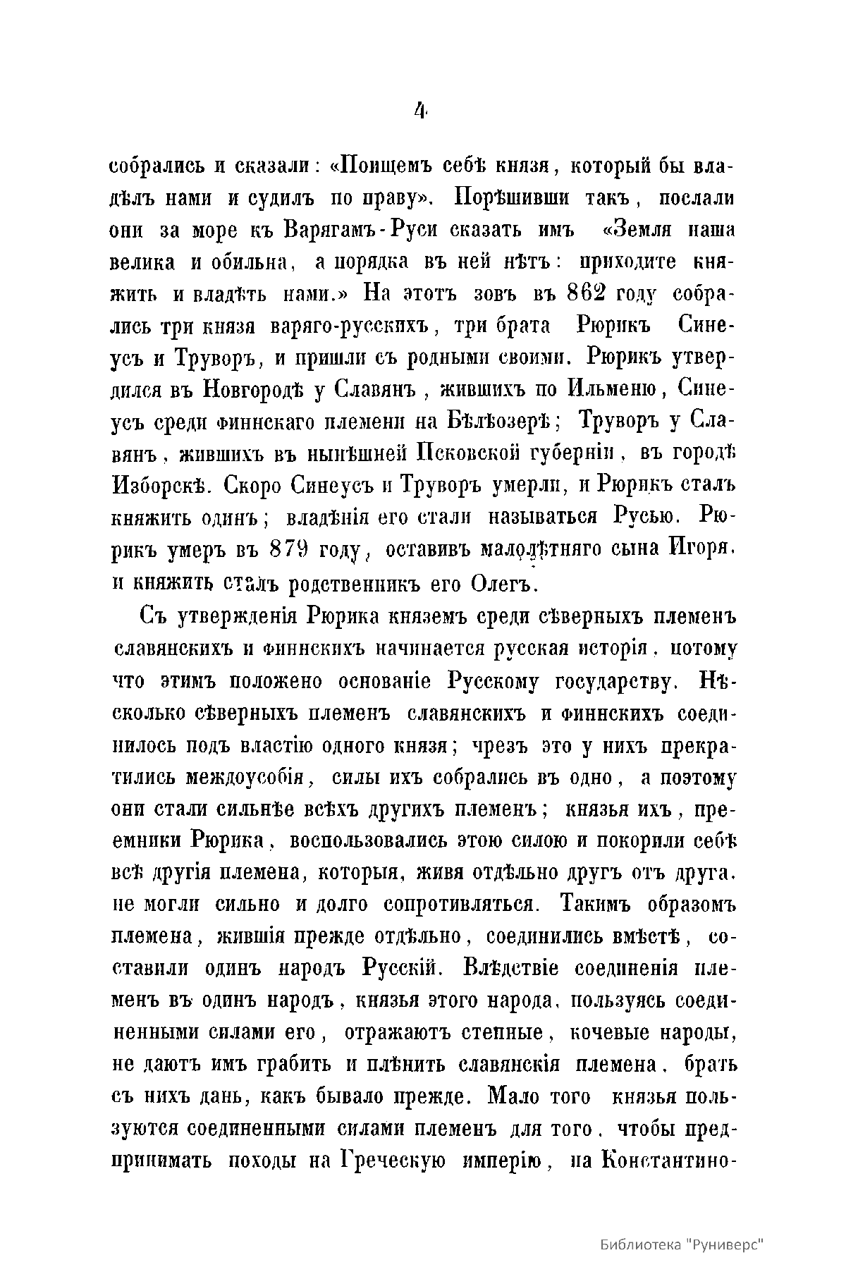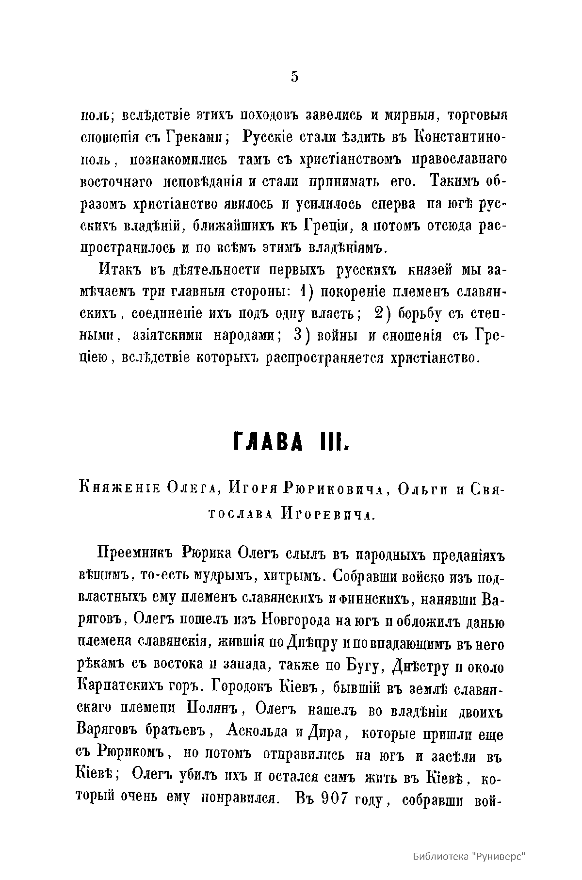 Учебный курс русской истории до царствования императора Александра I. «Соловьев давал слушателю удивительно цельный, стройной нитью проведенныйсквозь цепь обобщенных фактов взгляд на ход русской истории… Настойчиво говорил и повторял он, где нужно, о связи явлений, о последовательности исторического развития, об общих его законах, о том, что называл он необычным словом – историчностью… Чтение Соловьева… не било ни на чувства, ни на воображение, но оно заставляло размышлять». В.О. Ключевский