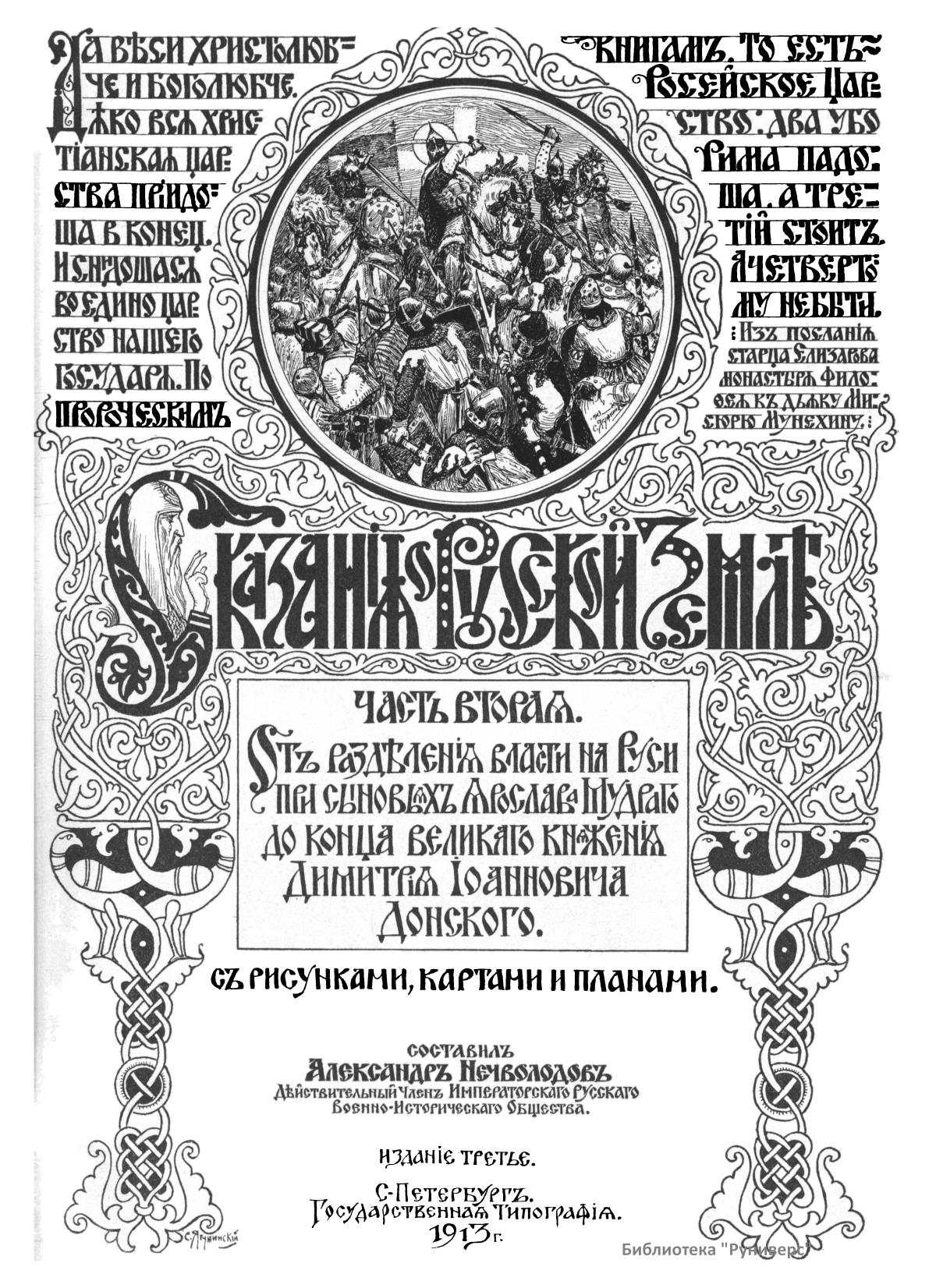 Четвертое издание труда действительного члена Императорского русского военно-исторического общества Александра Нечволодова. В своей работе он руководствовался всеми доступными ему первоисточниками, а также трудами знаменитых историков и ученых: Карамзина Н.М., Соловьева С.М., Забелина И.Е., Ключевского В.О., Платонова С.Ф., Шахматова А.А., Кондакова Н.П., Соболевского А.И., Лихачева Н.П. и др. Автор, следуя пожеланию Николая II, украшает это издание многочисленными рисунками – как воспроизведениями с исторических картин современных ему русских художников, так и снимками с древних икон, рукописей, со стенописи храмов, старинных зданий, оружия и разного рода утвари. Подробно разбирая прошлое России и ее значение среди остальных государств, автор совершенно соглашается со взглядами на будущность русской земли, высказанными в начале XVI века старцем Елизарова монастыря Филофеем: «Два убо Рима падоша, а третий стоит, а четвертому не быти».