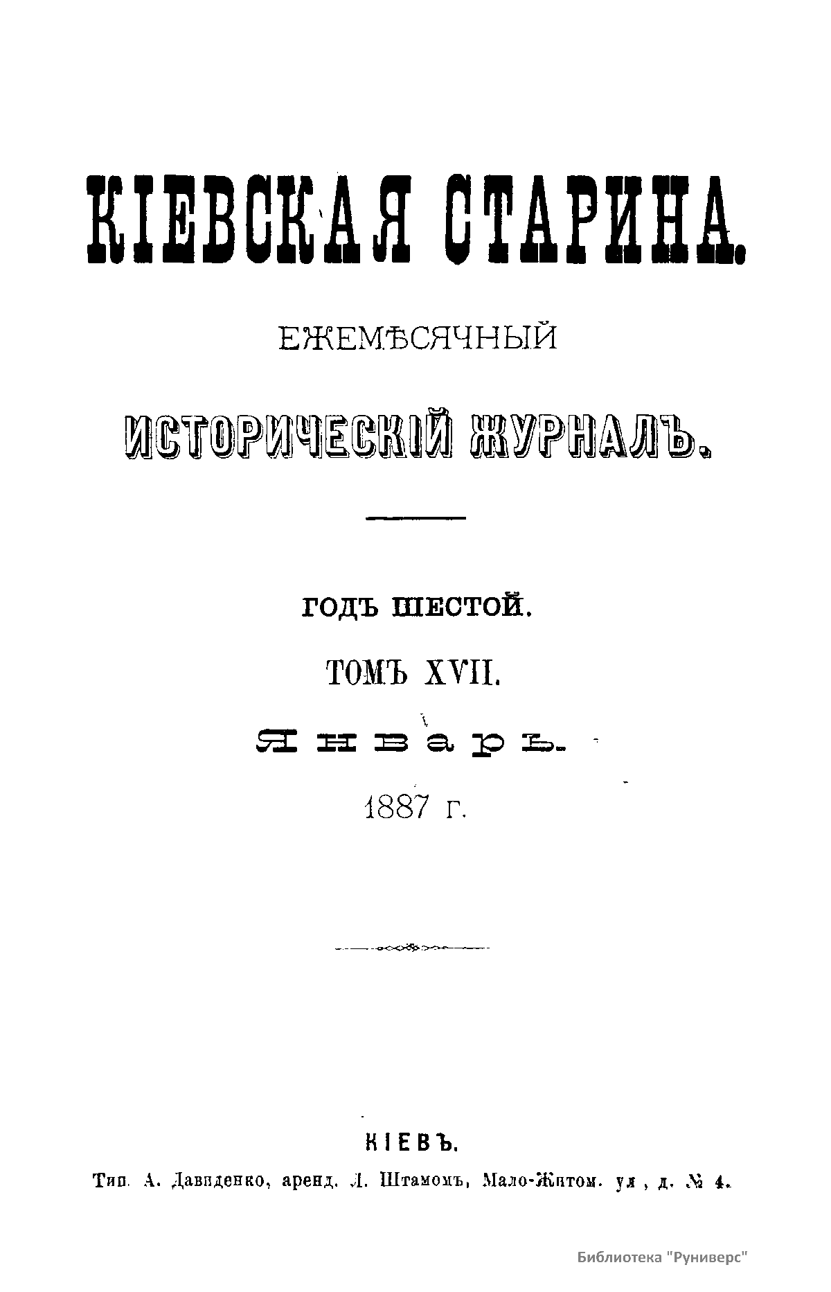 Киевская старина. Год шестой. Том XVII. Январь-Апрель 1887 г.