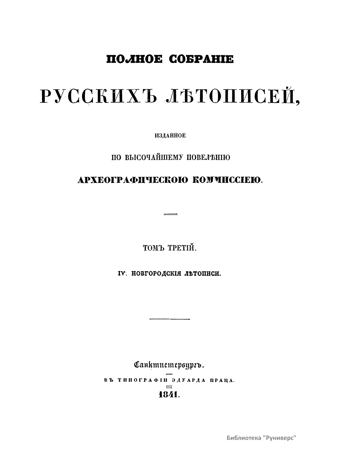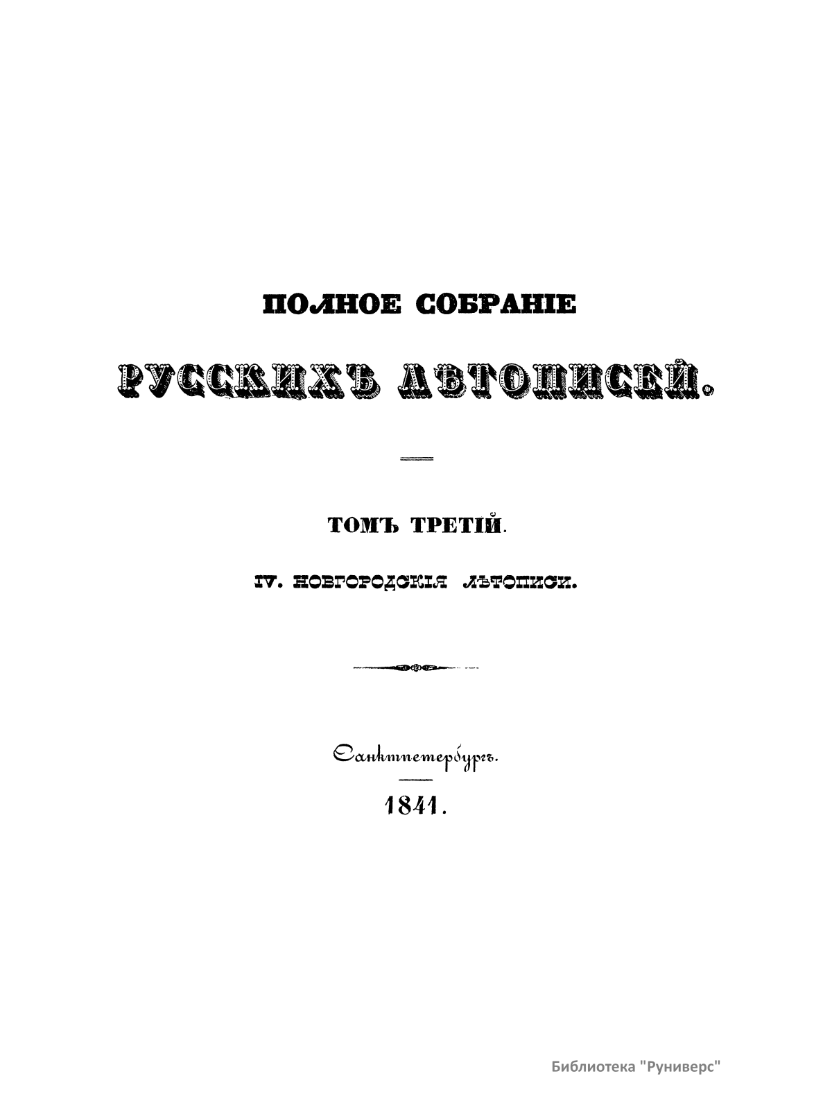 Полное собранiе русскихъ лѣтописей. Томъ третiй. IV. Новгородскiя лѣтописи