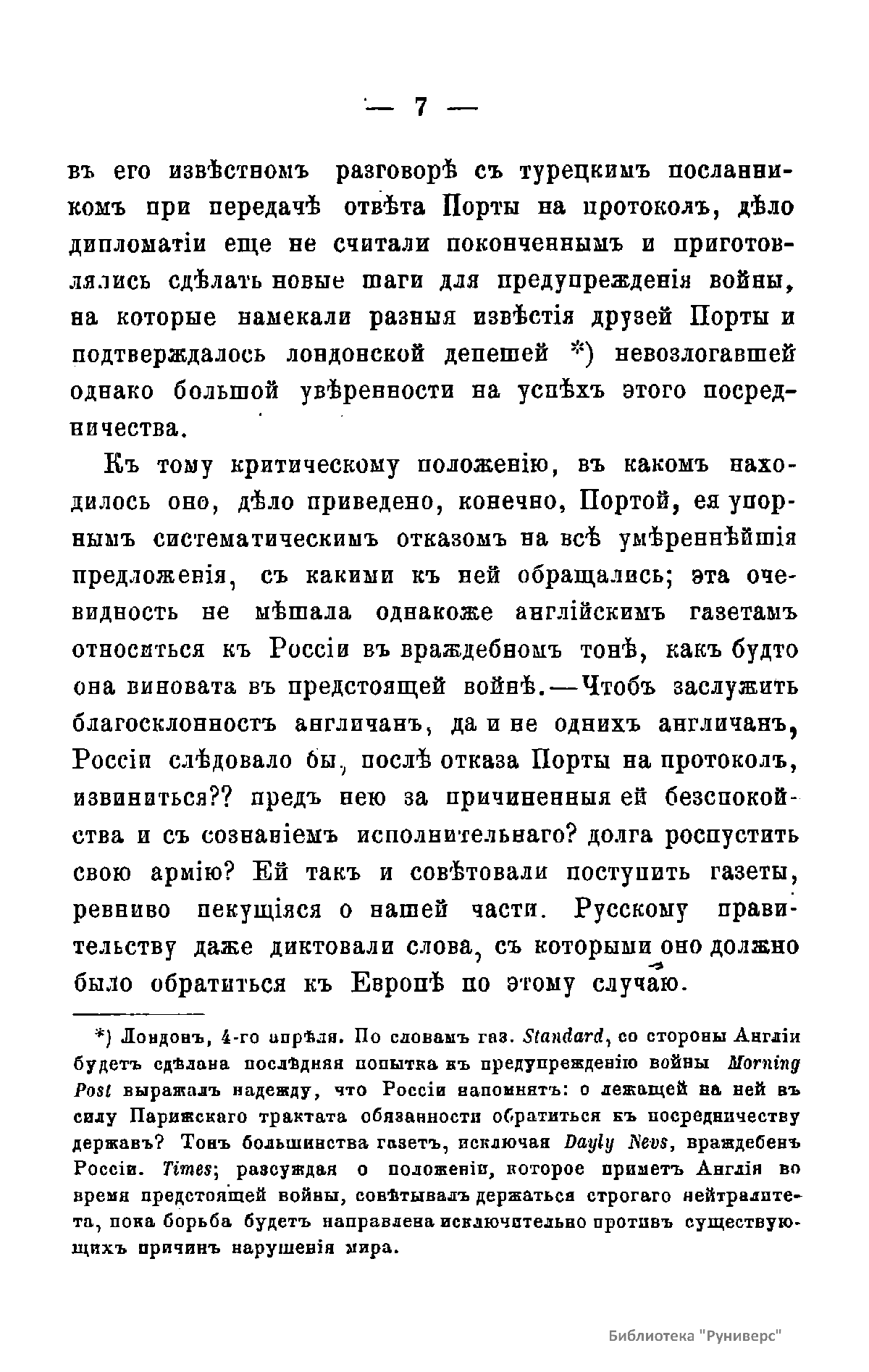Книга, опубликованная во время русско-турецкой войны, по «горячим следам» и с воодушевлением описывает военные действия 1877-го и 1878 гг. Русско-турецкая война 1877 – 1878 гг. была вызвана нежеланием Турции принять меры к улучшению положения подвластных ей христианских княжеств, обусловленному парижским трактатом 1856 г, и стремлением России укрепить свое влияние на Балканах. Способствовала освобождению народов Балканского полуострова от османского владычества. Россия объявила войну Турции 12 апреля 1877 г. Основные события: 1877 – сражение на Шипке, осада и взятие русскими войсками Плевны и Карса; 1878 – зимний переход русской армии через Балканский хребет, победы у Шипки – Шейново, Филиппополя, взятие Адрианополя. Завершилась Сан-Стефанским миром 1878 г., который обеспечил независимость балканским народам и территориальные приобретения России. Но Берлинский трактат ограничил независимость Болгарии и влияние России на Балканах.