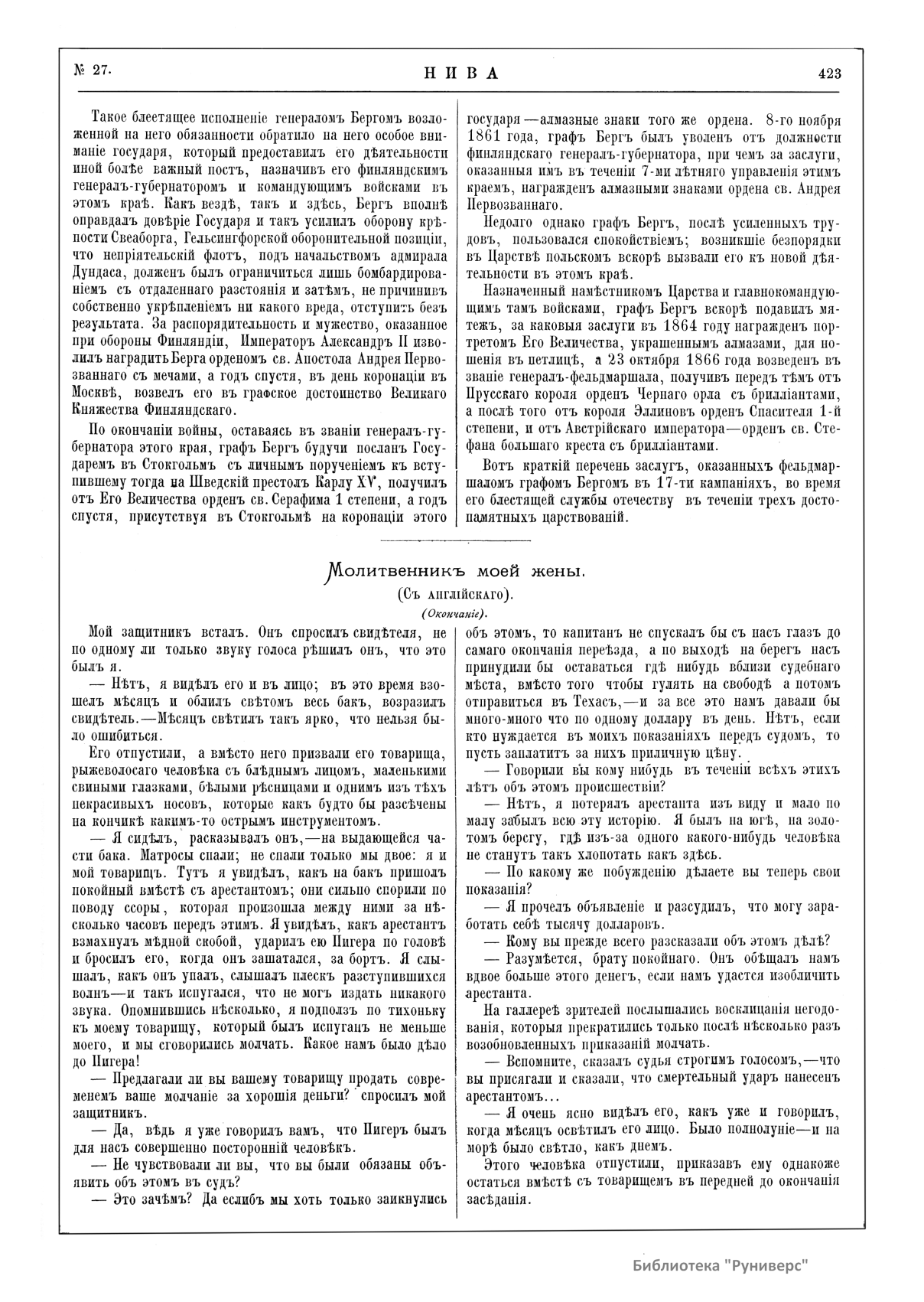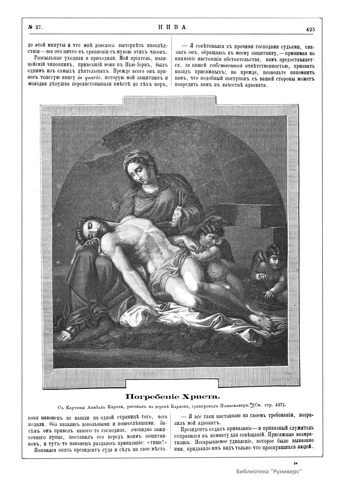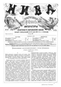 «Нива» — популярный еженедельный русский журнал с приложениями, издававшийся со второй половины XIX до начала XX века, носил подзаголовок «Журнал литературы, политики и современной жизни». Журнал был любимым детищем А. Ф. Маркса, возглавлявшего свое издательство вплоть до своей смерти в 1904 г. Позиционировалась «Нива» как иллюстрированный журнал для семейного чтения и был ориентирован, главным образом, на обывателя. В журнале публиковались литературные произведения, исторические, научно-популярные очерки, репродукции и гравюры картин современных художников. Материалы политического и общественного содержания также сопровождались многочисленными иллюстрациями. Среди известных литераторов, печатавшихся в журнале, были А. К. Толстой, Ф. И. Тютчев, Л. Н. Толстой, А. А. Фет, А. П. Чехов, Максим Горький, Корней Чуковский, Анна Ахматова, Иван Бунин и многие другие. Благодаря «Ниве» сочинения многих современных авторов добрались до самых отдаленных областей России.