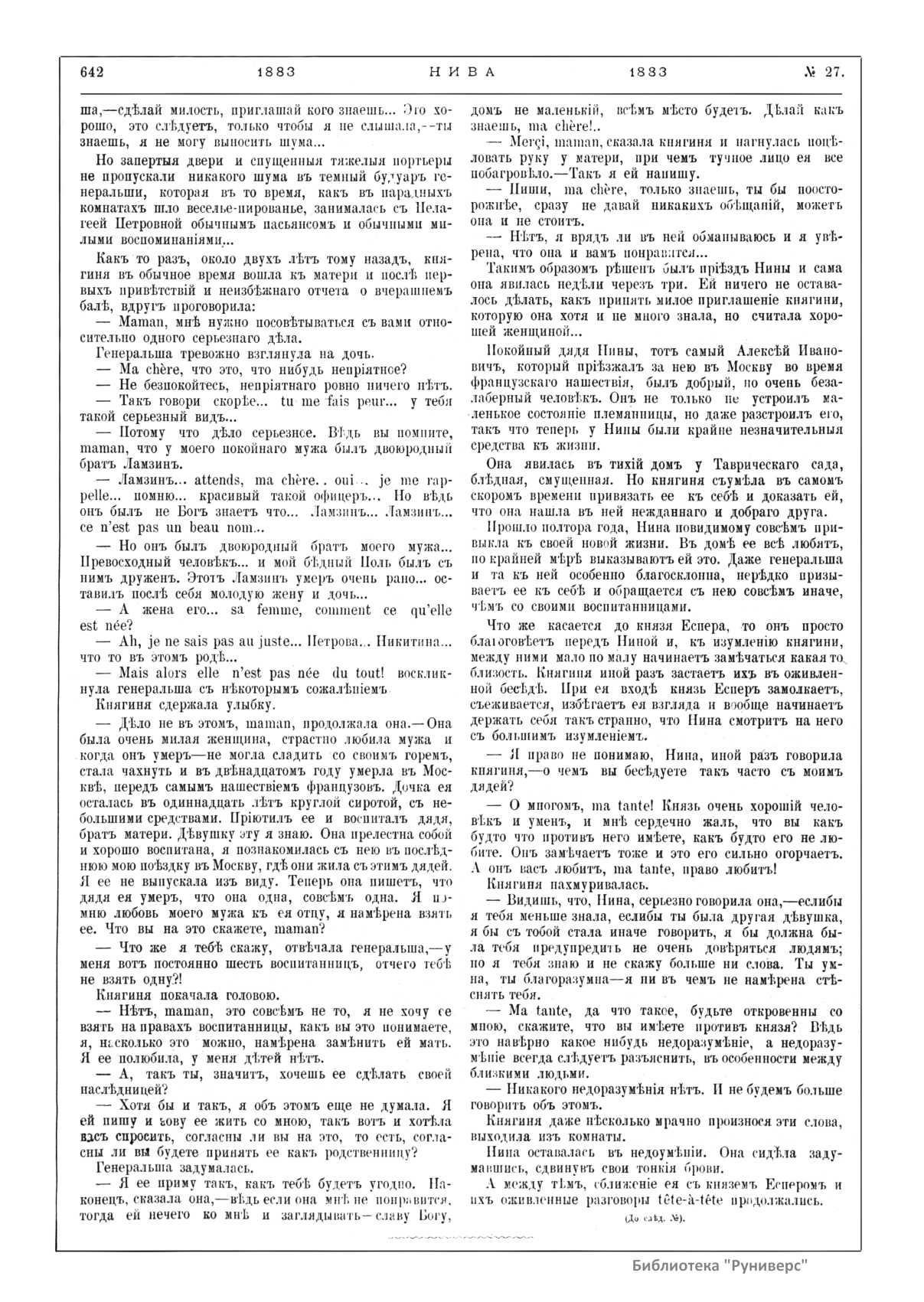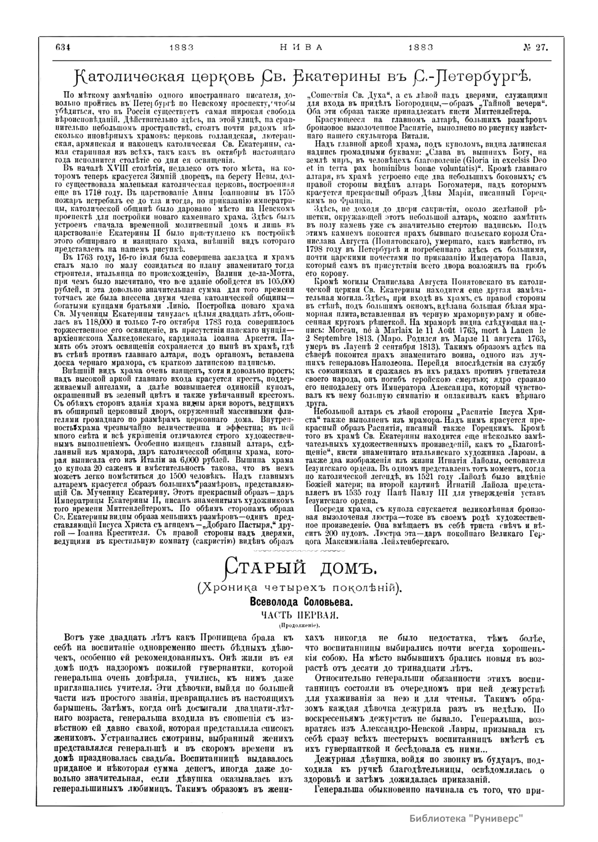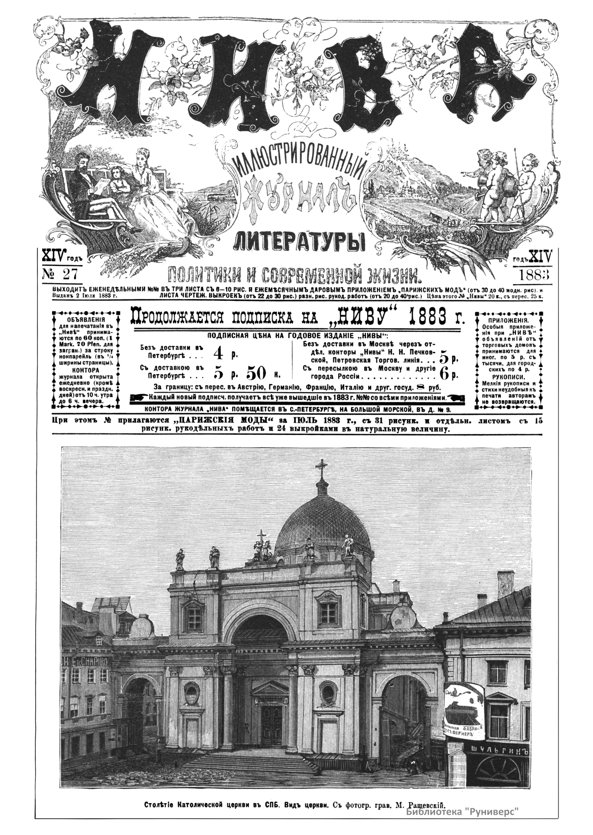 «Нива» — популярный еженедельный русский журнал с приложениями, издававшийся со второй половины XIX до начала XX века, носил подзаголовок «Журнал литературы, политики и современной жизни». Журнал был любимым детищем А. Ф. Маркса, возглавлявшего свое издательство вплоть до своей смерти в 1904 г. Позиционировалась «Нива» как иллюстрированный журнал для семейного чтения и был ориентирован, главным образом, на обывателя. В журнале публиковались литературные произведения, исторические, научно-популярные очерки, репродукции и гравюры картин современных художников. Материалы политического и общественного содержания также сопровождались многочисленными иллюстрациями. Среди известных литераторов, печатавшихся в журнале, были А. К. Толстой, Ф. И. Тютчев, Л. Н. Толстой, А. А. Фет, А. П. Чехов, Максим Горький, Корней Чуковский, Анна Ахматова, Иван Бунин и многие другие. Благодаря «Ниве» сочинения многих современных авторов добрались до самых отдаленных областей России.