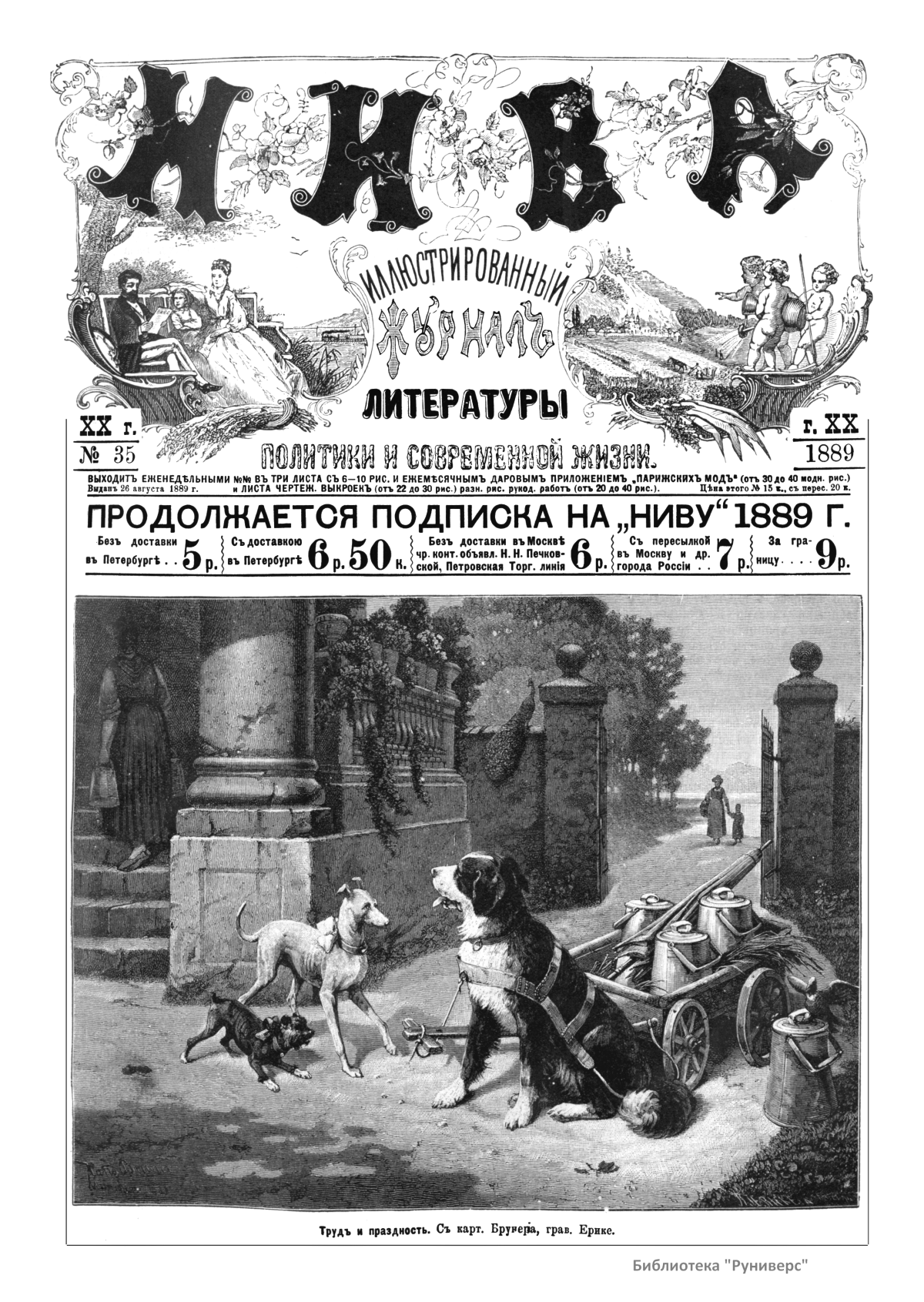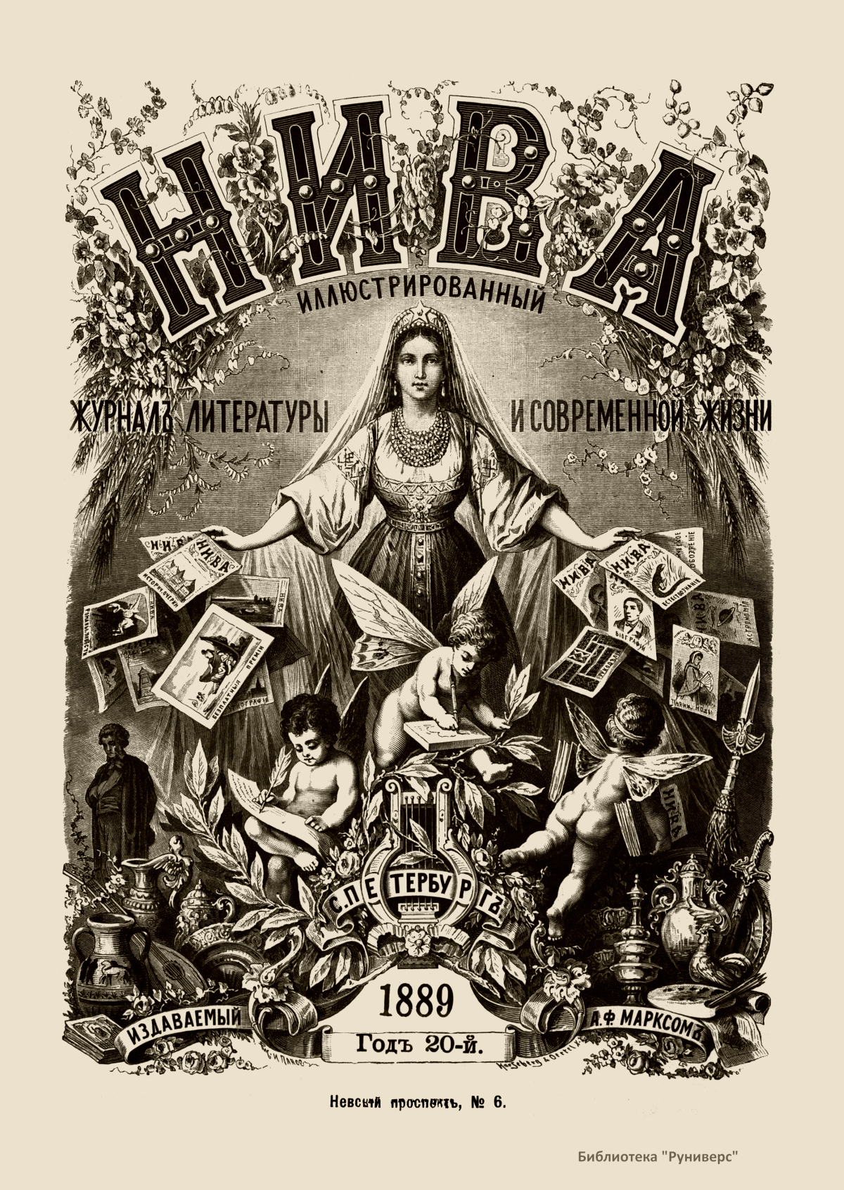 «Нива» — популярный еженедельный русский журнал с приложениями, издававшийся со второй половины XIX до начала XX века, носил подзаголовок «Журнал литературы, политики и современной жизни». Журнал был любимым детищем А. Ф. Маркса, возглавлявшего свое издательство вплоть до своей смерти в 1904 г. Позиционировалась «Нива» как иллюстрированный журнал для семейного чтения и был ориентирован, главным образом, на обывателя. В журнале публиковались литературные произведения, исторические, научно-популярные очерки, репродукции и гравюры картин современных художников. Материалы политического и общественного содержания также сопровождались многочисленными иллюстрациями. Среди известных литераторов, печатавшихся в журнале, были А. К. Толстой, Ф. И. Тютчев, Л. Н. Толстой, А. А. Фет, А. П. Чехов, Максим Горький, Корней Чуковский, Анна Ахматова, Иван Бунин и многие другие. Благодаря «Ниве» сочинения многих современных авторов добрались до самых отдаленных областей России.