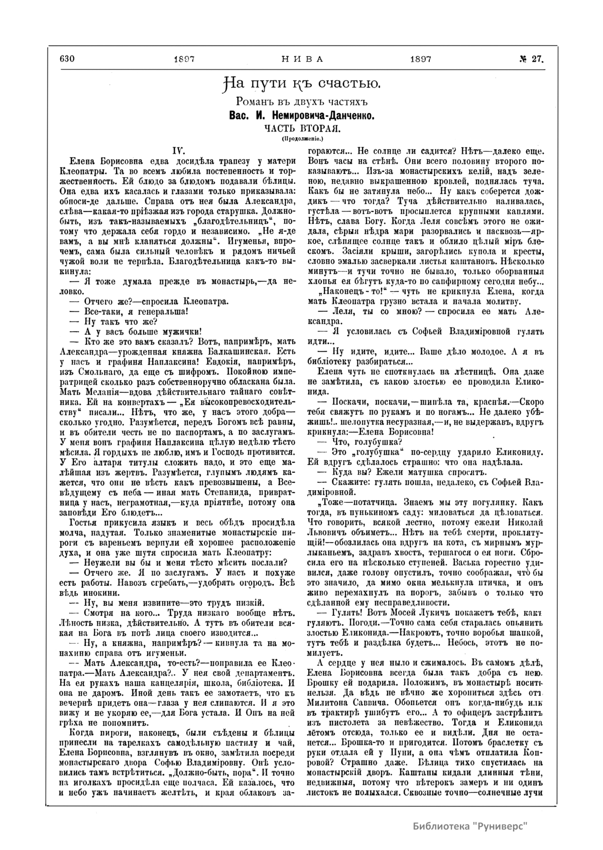 «Нива» — популярный еженедельный русский журнал с приложениями, издававшийся со второй половины XIX до начала XX века, носил подзаголовок «Журнал литературы, политики и современной жизни». Журнал был любимым детищем А. Ф. Маркса, возглавлявшего свое издательство вплоть до своей смерти в 1904 г. Позиционировалась «Нива» как иллюстрированный журнал для семейного чтения и был ориентирован, главным образом, на обывателя. В журнале публиковались литературные произведения, исторические, научно-популярные очерки, репродукции и гравюры картин современных художников. Материалы политического и общественного содержания также сопровождались многочисленными иллюстрациями. Среди известных литераторов, печатавшихся в журнале, были А. К. Толстой, Ф. И. Тютчев, Л. Н. Толстой, А. А. Фет, А. П. Чехов, Максим Горький, Корней Чуковский, Анна Ахматова, Иван Бунин и многие другие. Благодаря «Ниве» сочинения многих современных авторов добрались до самых отдаленных областей России.