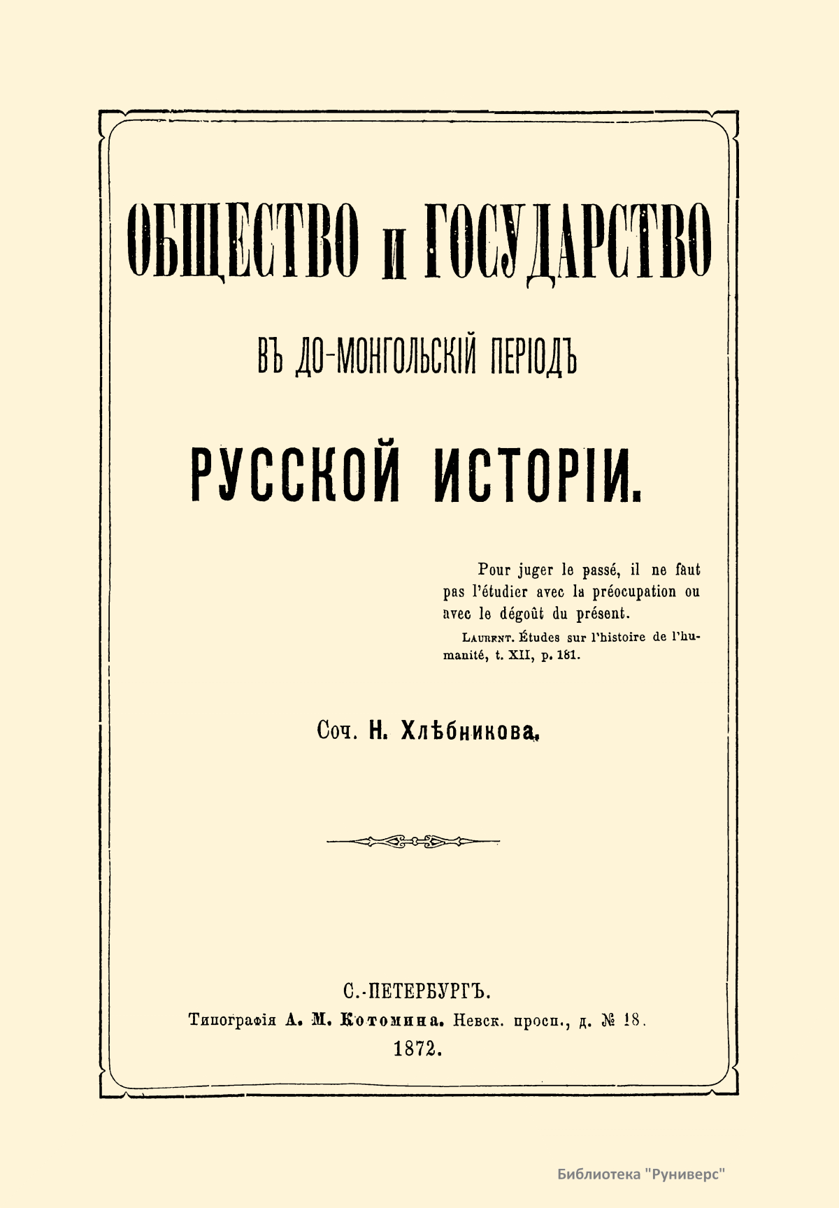 Общество и государство въ до-монгольскiй перiодъ русской исторiи