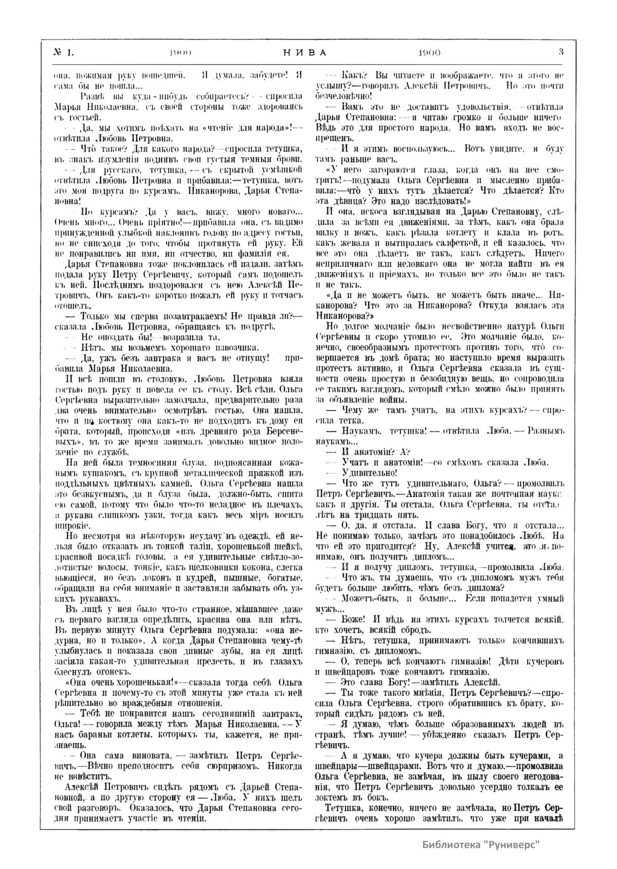 «Нива» — популярный еженедельный русский журнал с приложениями, издававшийся со второй половины XIX до начала XX века, носил подзаголовок «Журнал литературы, политики и современной жизни». Журнал был любимым детищем А. Ф. Маркса, возглавлявшего свое издательство вплоть до своей смерти в 1904 г. Позиционировалась «Нива» как иллюстрированный журнал для семейного чтения и был ориентирован, главным образом, на обывателя. В журнале публиковались литературные произведения, исторические, научно-популярные очерки, репродукции и гравюры картин современных художников. Материалы политического и общественного содержания также сопровождались многочисленными иллюстрациями. Среди известных литераторов, печатавшихся в журнале, были А. К. Толстой, Ф. И. Тютчев, Л. Н. Толстой, А. А. Фет, А. П. Чехов, Максим Горький, Корней Чуковский, Анна Ахматова, Иван Бунин и многие другие. Благодаря «Ниве» сочинения многих современных авторов добрались до самых отдаленных областей России.