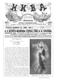 «Нива» — популярный еженедельный русский журнал с приложениями, издававшийся со второй половины XIX до начала XX века, носил подзаголовок «Журнал литературы, политики и современной жизни». Журнал был любимым детищем А. Ф. Маркса, возглавлявшего свое издательство вплоть до своей смерти в 1904 г. Позиционировалась «Нива» как иллюстрированный журнал для семейного чтения и был ориентирован, главным образом, на обывателя. В журнале публиковались литературные произведения, исторические, научно-популярные очерки, репродукции и гравюры картин современных художников. Материалы политического и общественного содержания также сопровождались многочисленными иллюстрациями. Среди известных литераторов, печатавшихся в журнале, были А. К. Толстой, Ф. И. Тютчев, Л. Н. Толстой, А. А. Фет, А. П. Чехов, Максим Горький, Корней Чуковский, Анна Ахматова, Иван Бунин и многие другие. Благодаря «Ниве» сочинения многих современных авторов добрались до самых отдаленных областей России.