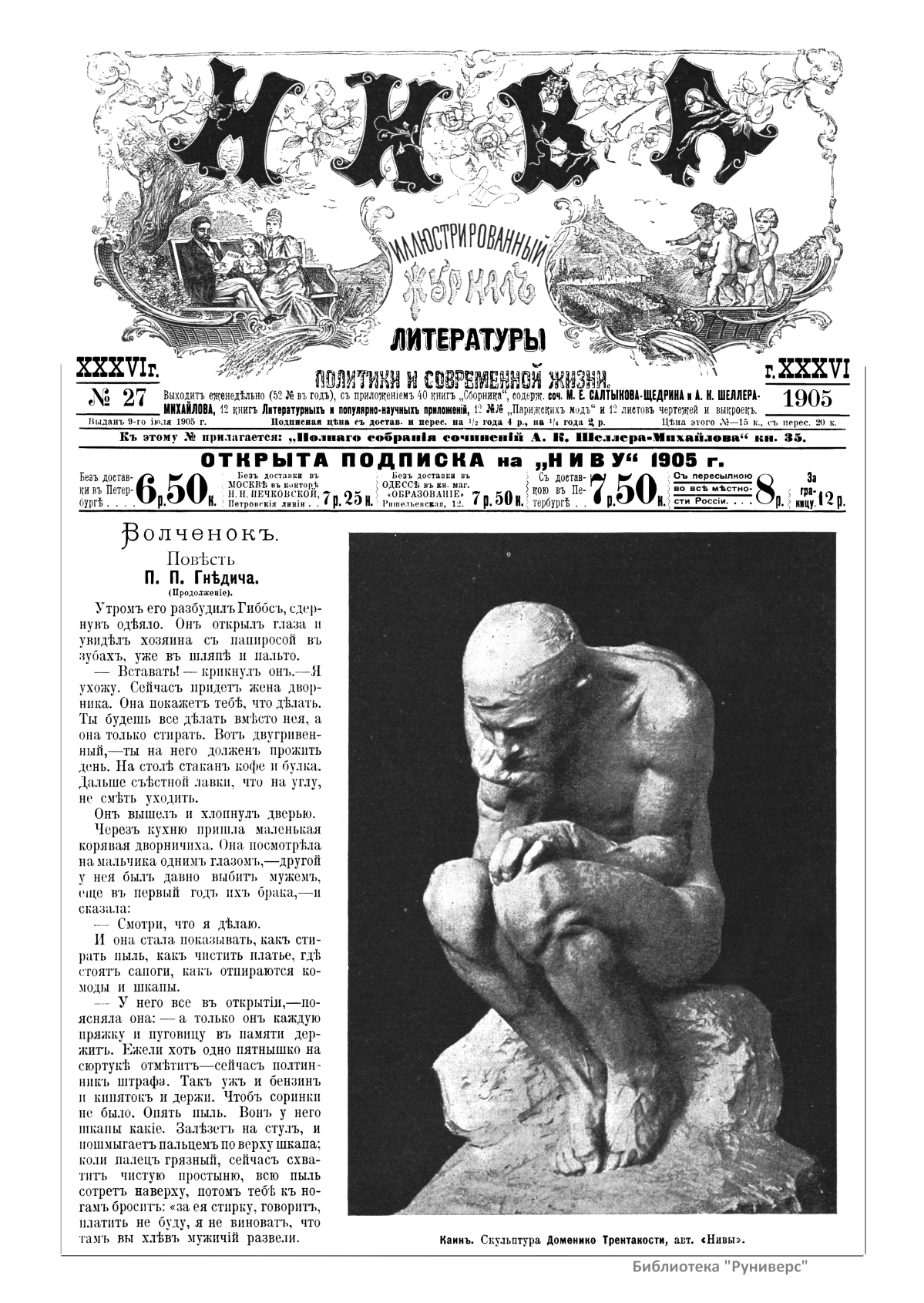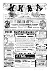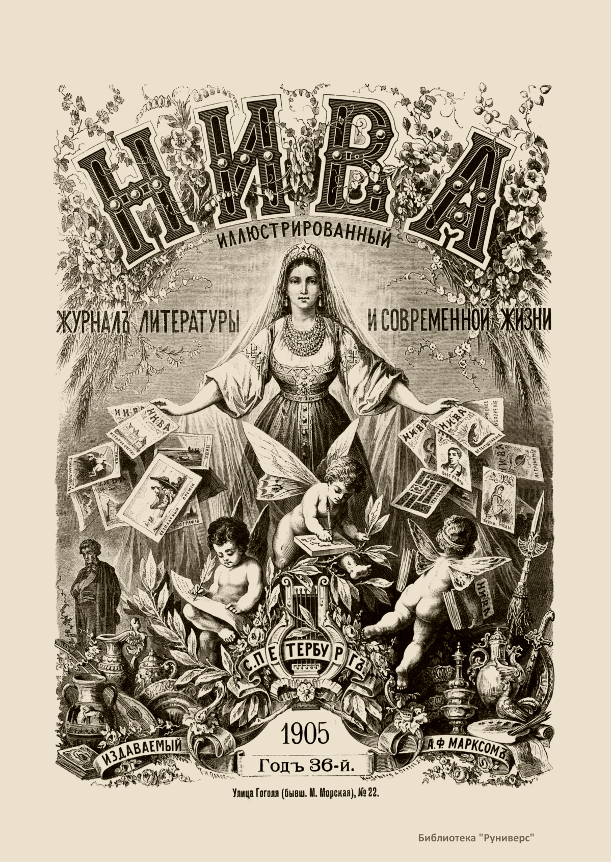 «Нива» — популярный еженедельный русский журнал с приложениями, издававшийся со второй половины XIX до начала XX века, носил подзаголовок «Журнал литературы, политики и современной жизни». Журнал был любимым детищем А. Ф. Маркса, возглавлявшего свое издательство вплоть до своей смерти в 1904 г. Позиционировалась «Нива» как иллюстрированный журнал для семейного чтения и был ориентирован, главным образом, на обывателя. В журнале публиковались литературные произведения, исторические, научно-популярные очерки, репродукции и гравюры картин современных художников. Материалы политического и общественного содержания также сопровождались многочисленными иллюстрациями. Среди известных литераторов, печатавшихся в журнале, были А. К. Толстой, Ф. И. Тютчев, Л. Н. Толстой, А. А. Фет, А. П. Чехов, Максим Горький, Корней Чуковский, Анна Ахматова, Иван Бунин и многие другие. Благодаря «Ниве» сочинения многих современных авторов добрались до самых отдаленных областей России.