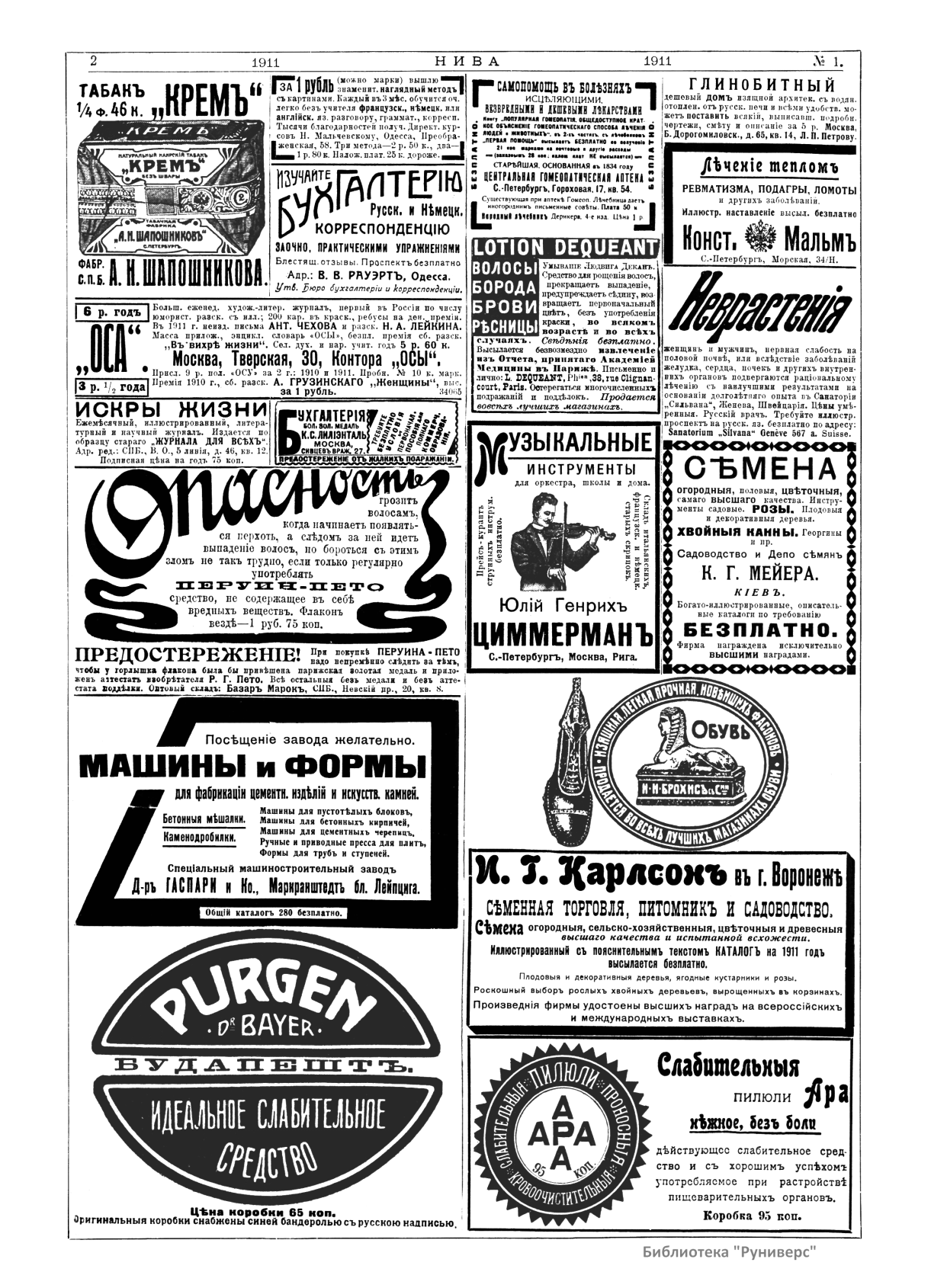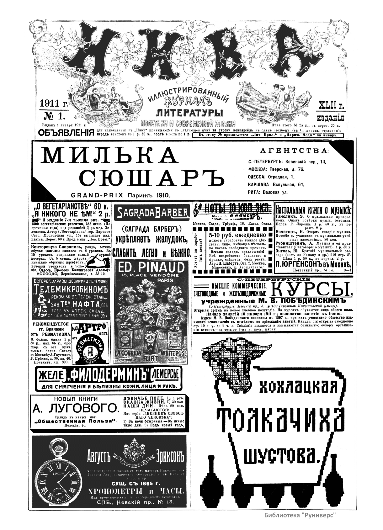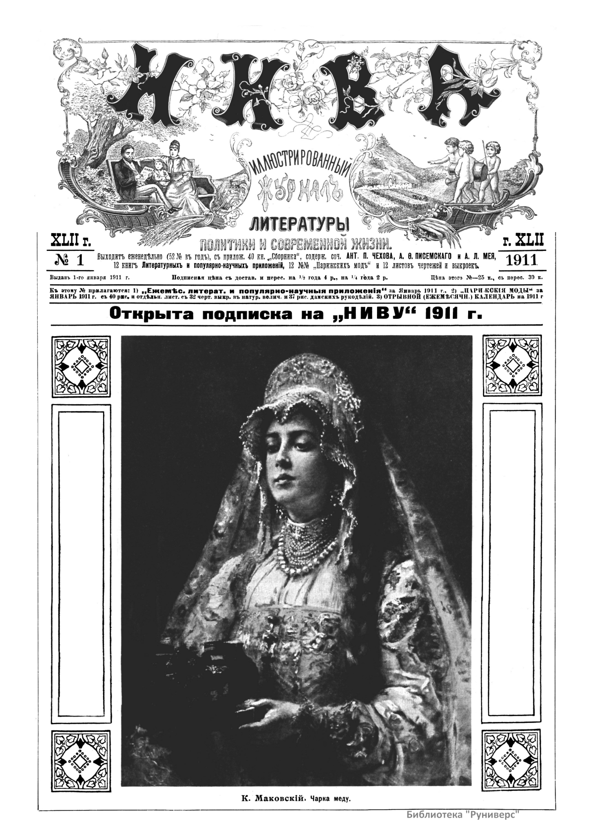«Нива» — популярный еженедельный русский журнал с приложениями, издававшийся со второй половины XIX до начала XX века, носил подзаголовок «Журнал литературы, политики и современной жизни». Журнал был любимым детищем А. Ф. Маркса, возглавлявшего свое издательство вплоть до своей смерти в 1904 г. Позиционировалась «Нива» как иллюстрированный журнал для семейного чтения и был ориентирован, главным образом, на обывателя. В журнале публиковались литературные произведения, исторические, научно-популярные очерки, репродукции и гравюры картин современных художников. Материалы политического и общественного содержания также сопровождались многочисленными иллюстрациями. Среди известных литераторов, печатавшихся в журнале, были А. К. Толстой, Ф. И. Тютчев, Л. Н. Толстой, А. А. Фет, А. П. Чехов, Максим Горький, Корней Чуковский, Анна Ахматова, Иван Бунин и многие другие. Благодаря «Ниве» сочинения многих современных авторов добрались до самых отдаленных областей России.