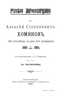Алексѣй Степановичъ Хомяковъ. Къ столѣтию со дня его рожденiя 1 мая 1804 - 1904
