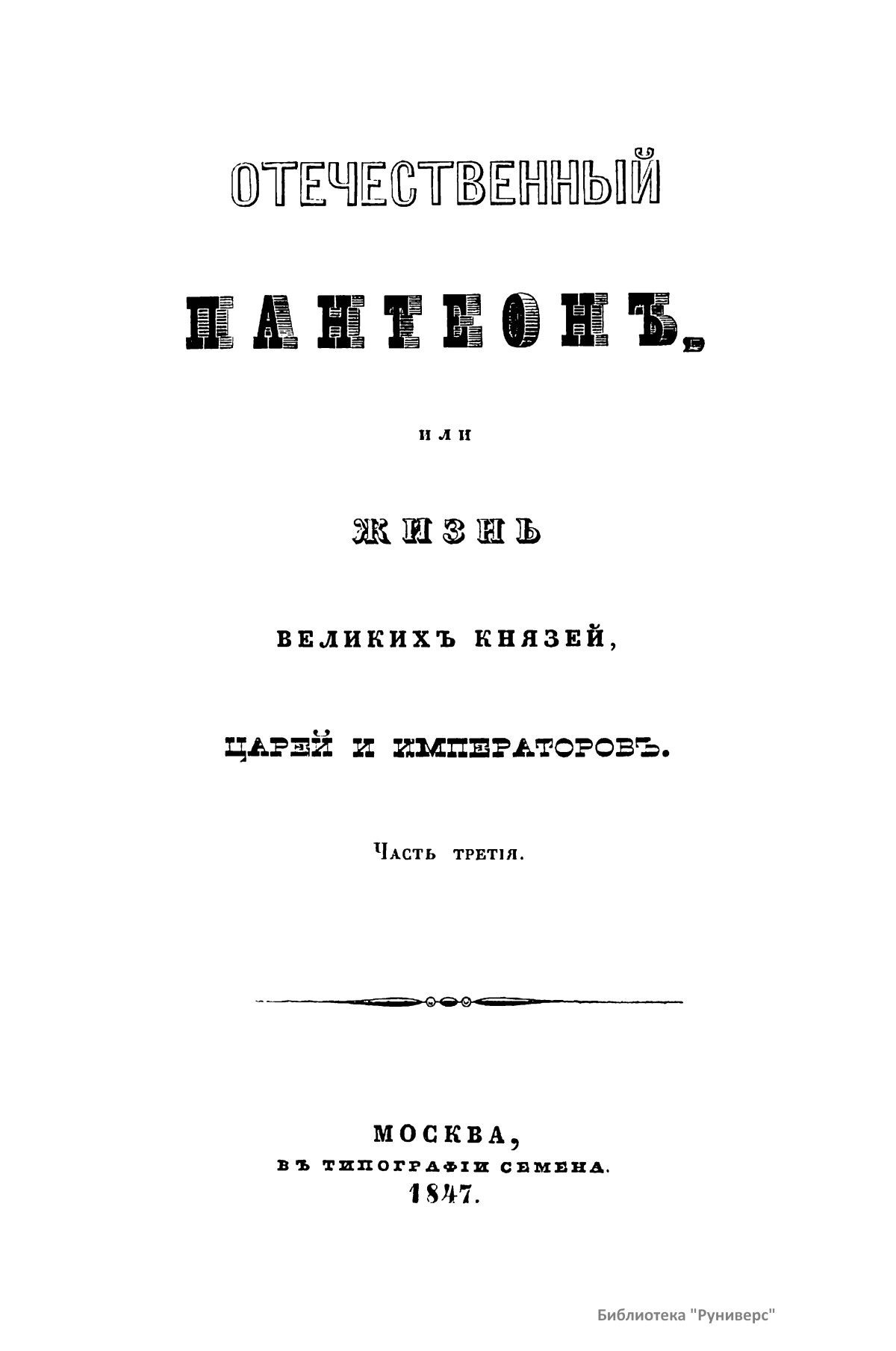 Отечественный пантеон, или жизнь великих князей, царей и императоров. Часть третья
