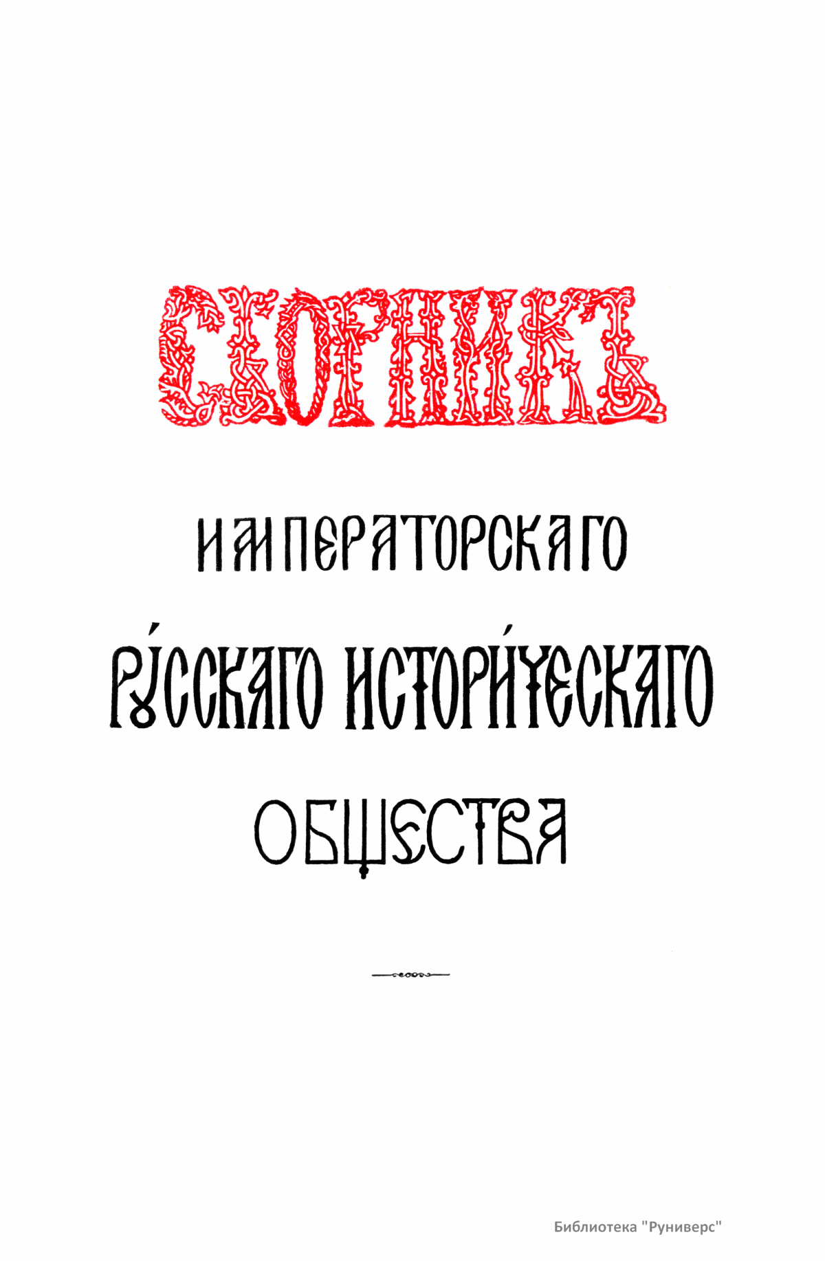 Сборники Русского исторического общества (РИО) – крупнейшая серийная публикация источников по истории России XVIII–XIX веков. За пятьдесят лет существования Общества (1866–1916) было выпущено 148 томов Сборника. Тематика опубликованных в Сборнике материалов обширна и включает в себя документы, относящиеся как к внутренней, так и внешней политике государства. Среди них можно выделить шесть крупных серий: «Материалы по истории Екатерининской комиссии для сочинения проекта нового Уложения 1767 г.», «Бумаги Екатерины II», «Материалы для истории высших государственных учреждений России в XVIII в.», «Материалы для политической и бытовой истории в 1812 г.», «Дипломатическая переписка иностранных послов и посланников при русском дворе», «Памятники дипломатических отношений древней России с державами иностранными», включающие документы XV–XVII веков, перешедшие в РИО от Второго отделения императорской канцелярии. Помимо этих серий в Сборнике публиковались личные бумаги Петра I, Петра II, Екатерины I, Александра I, Николая I, Александра II, а также документы, связанные с деятельностью видных государственных сановников. В Сборнике выходили отчёты о годичных собраниях РИО. Во время подготовки издания Русского биографического словаря в томах 60 и 62 был помещён Азбучный указатель имён русских деятелей для словаря. Основная работа по подготовке издания Сборника лежала на ответственных секретарях РИО. Первым таким секретарём стал один из наиболее деятельных организаторов Общества А. А. Половцев. В разное время в работе Общества принимали участие крупные историки: С. М. Соловьёв, В. О. Ключевский, Н. И. Костомаров, Н. Ф. Дубровин, П. П. Пекарский, В. И. Сергеевич, Я. К. Грот, А. Н. Филиппов, И. Е. Забелин, А. Н. Пыпин, С. Ф. Платонов, В. С. Иконников, Н. Д. Чечулин, А. Н. Попов.
