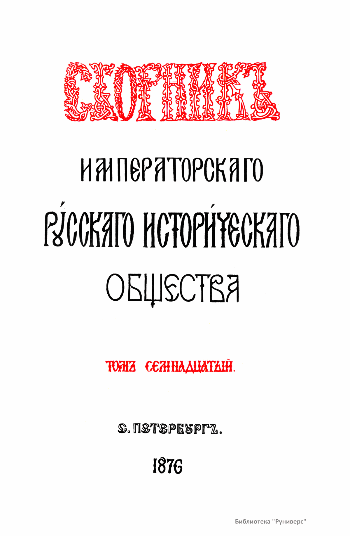 Сборникъ Русскаго историческаго общества. Томъ семнадцатый