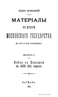 Материалы к истории московского государства в XVI и XVII столетиях. Выпуск II. Война с Польшей в 1609-1611 годах