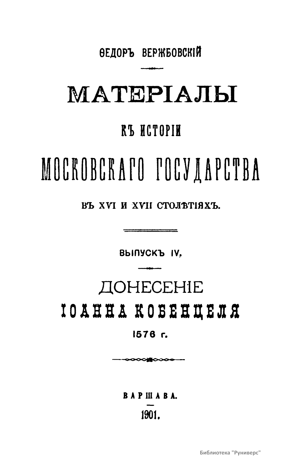 Материалы к истории московского государства в XVI и XVII столетиях. Выпуск IV. Донесение Иоанна Кобенцеля