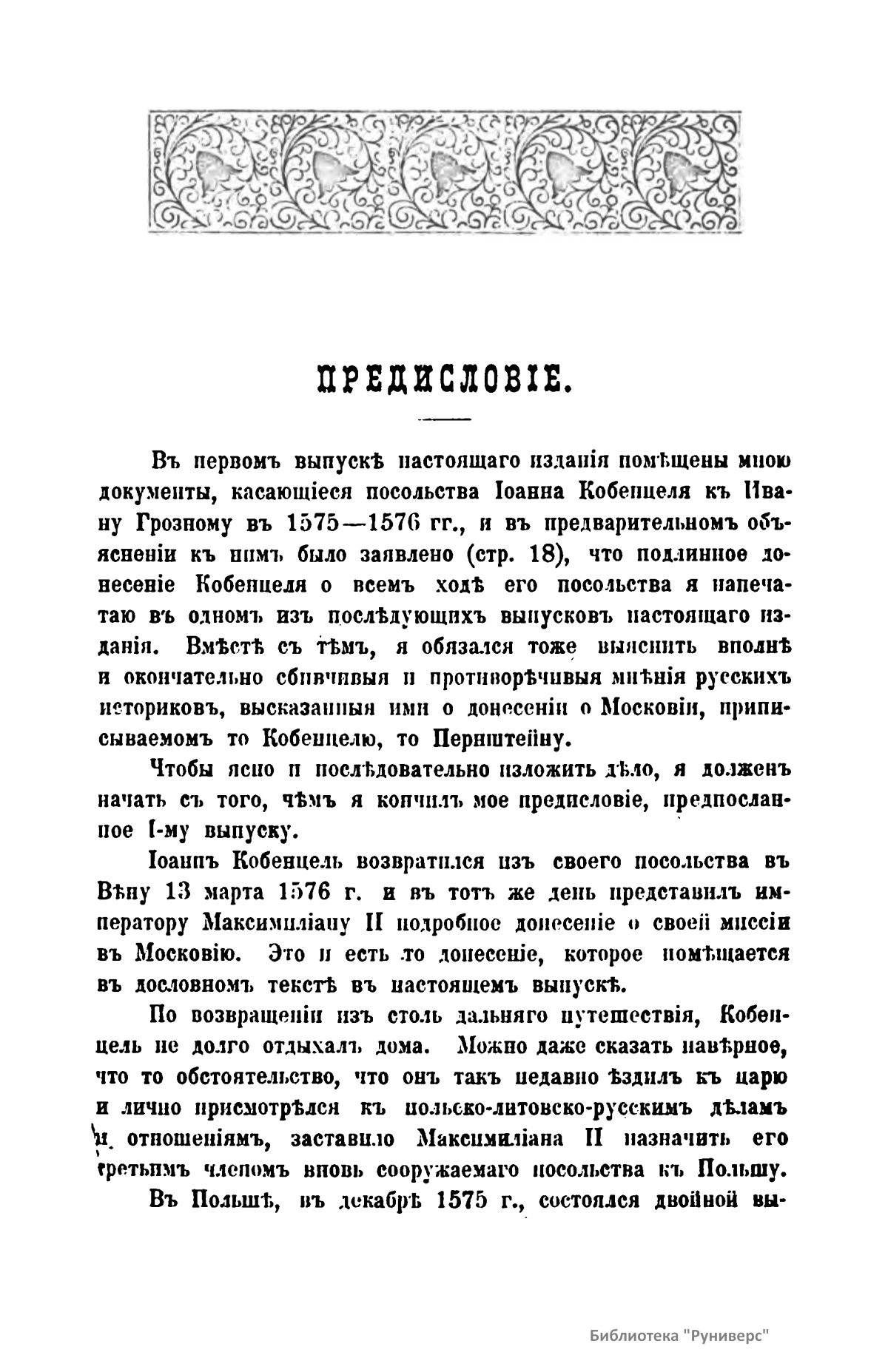 Выпуск I. Посольство Иоанна Кобенцеля в Москву в 1575-1576 гг.