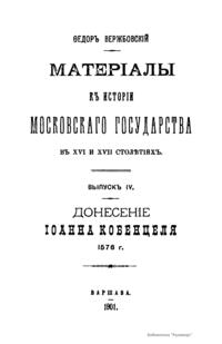 Матерiалы къ исторiи московскаго государства въ XVI и XVII столѣтiях. Выпускъ IV. Донесенiе Iоаннаа Кобенцеля